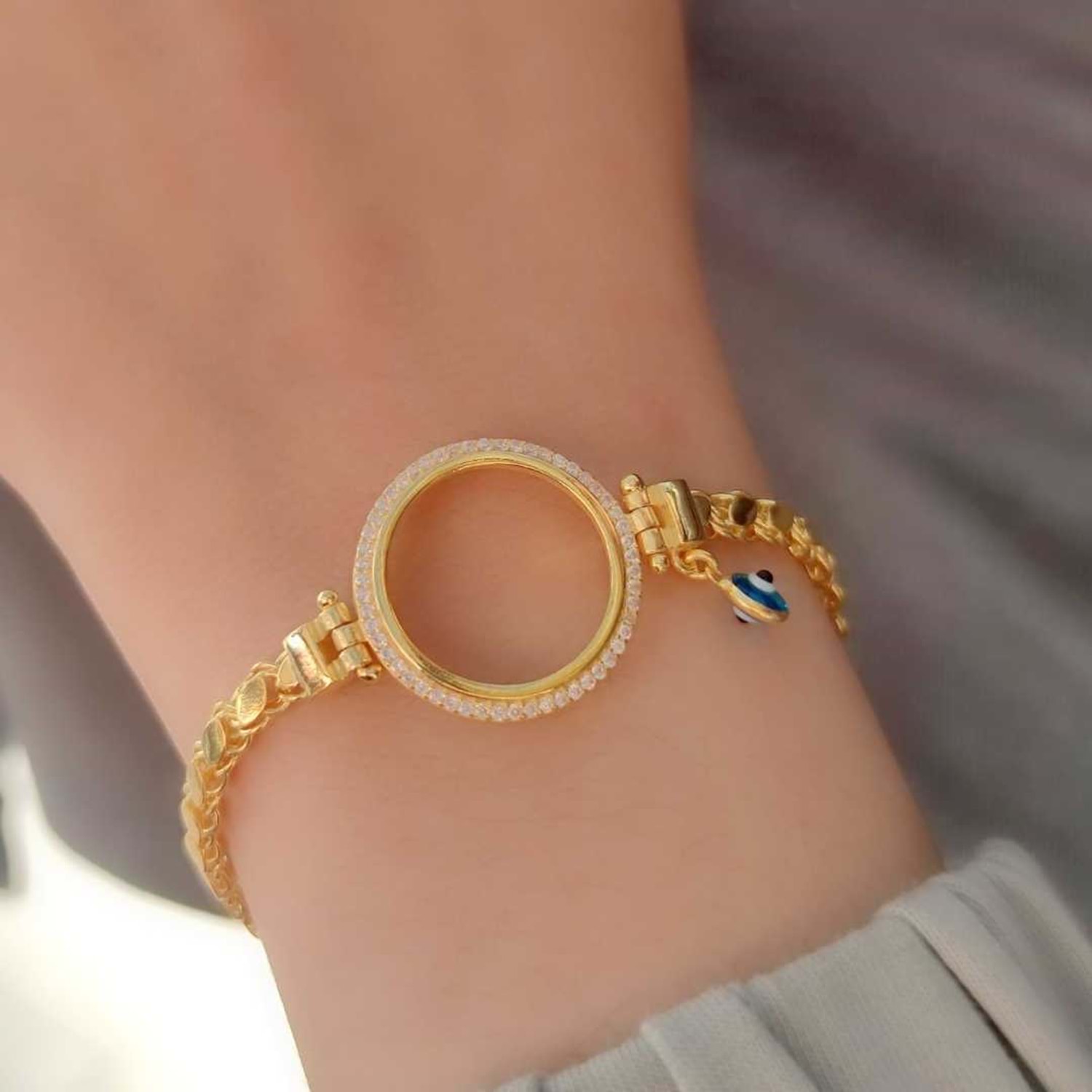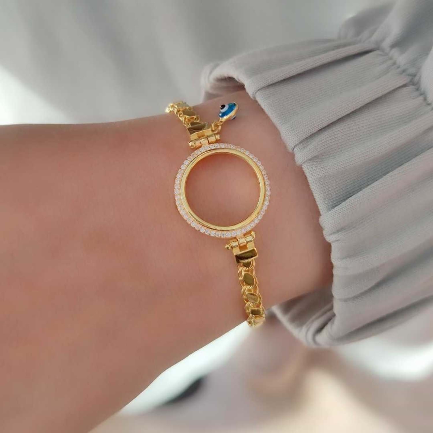925 AYAR GÜMÜŞ ÇEYREK ALTIN TAKILABİLEN GÜMÜŞ BİLEKLİK ARKASINDA 4 ADET DİŞ BULUNMAKTADIR. TAKILDIĞINDA ALTIN YERINDEN DAHİ KIMRAMAZ DÜŞME İHTİMALİ YOKTUR. ARPA PUL ZİNCİR KULLANILMIŞTIR. NAZAR BONCUK DETAYI VARDI ORT. GRAM : 9,50 gr BİLEKLİK UZUNLUK : 17,5 cm + 3 cm EK UZATMA HALKASI KİMYASAL ÜRÜNLERLE TEMASINDAN KAÇINILMALIDIR. SATIN ALDIĞINIZ ÜRÜNLER AYNI GÜN İÇİNDE KARGOYA TESLİM EDİLMEKTEDİR.