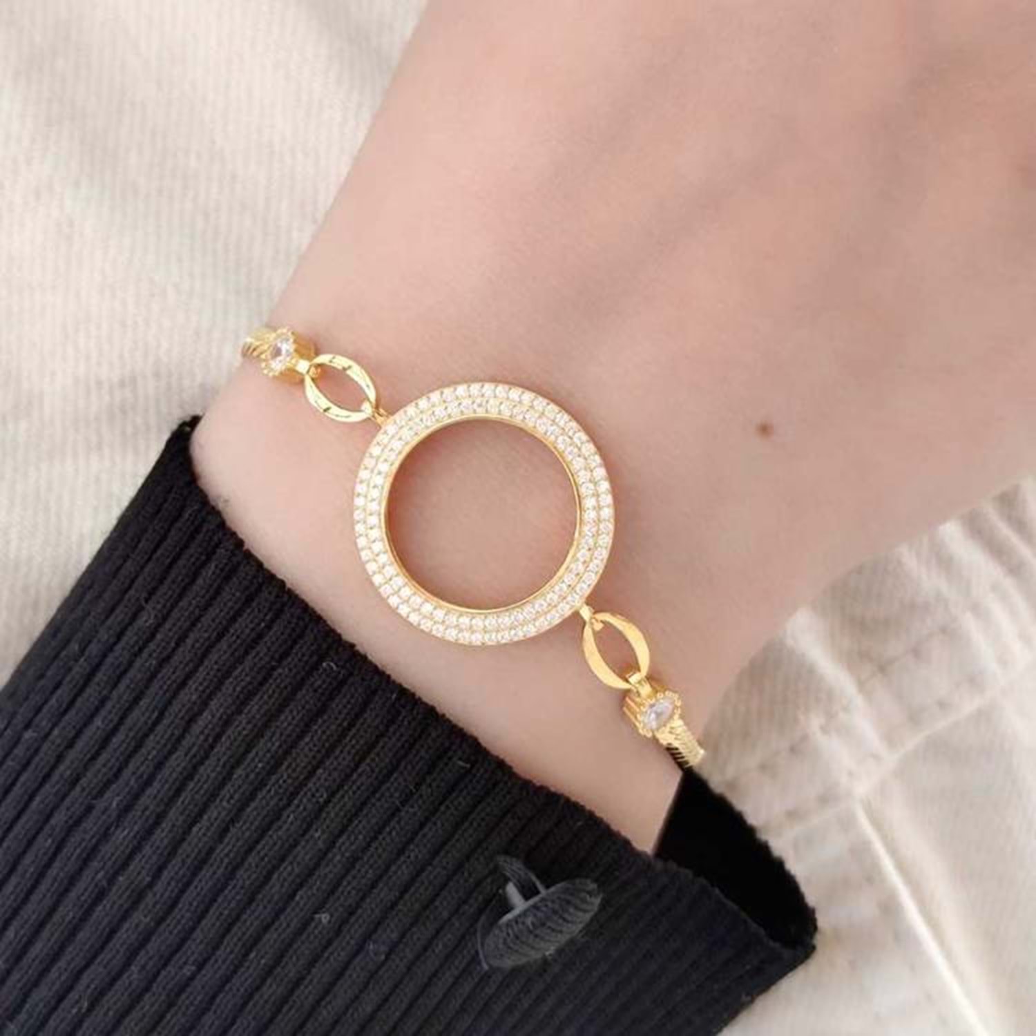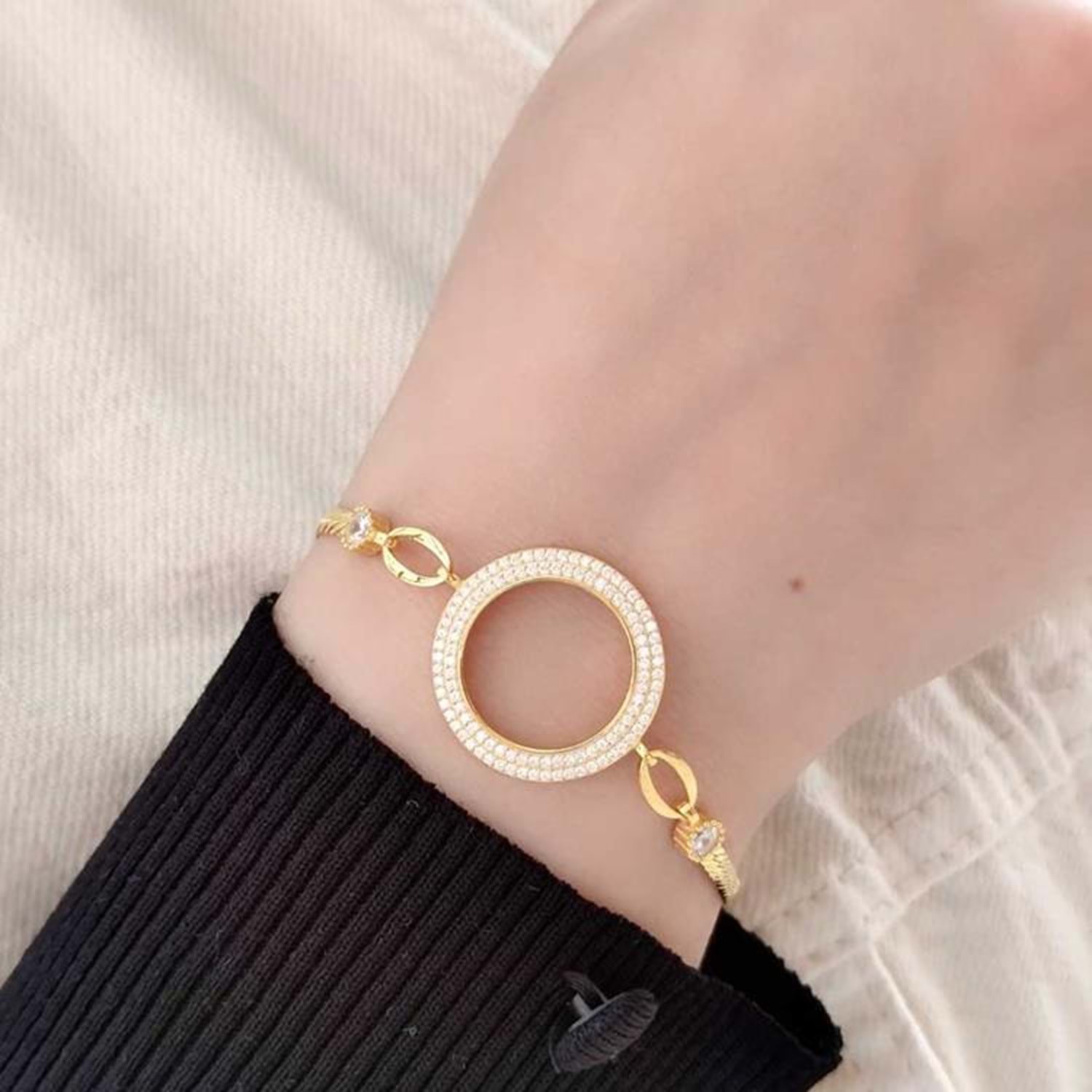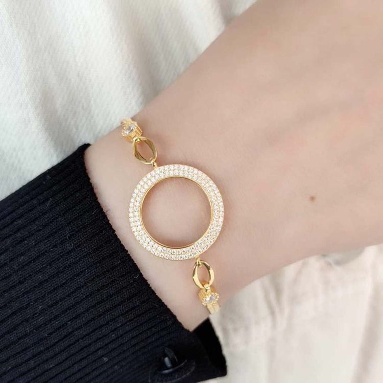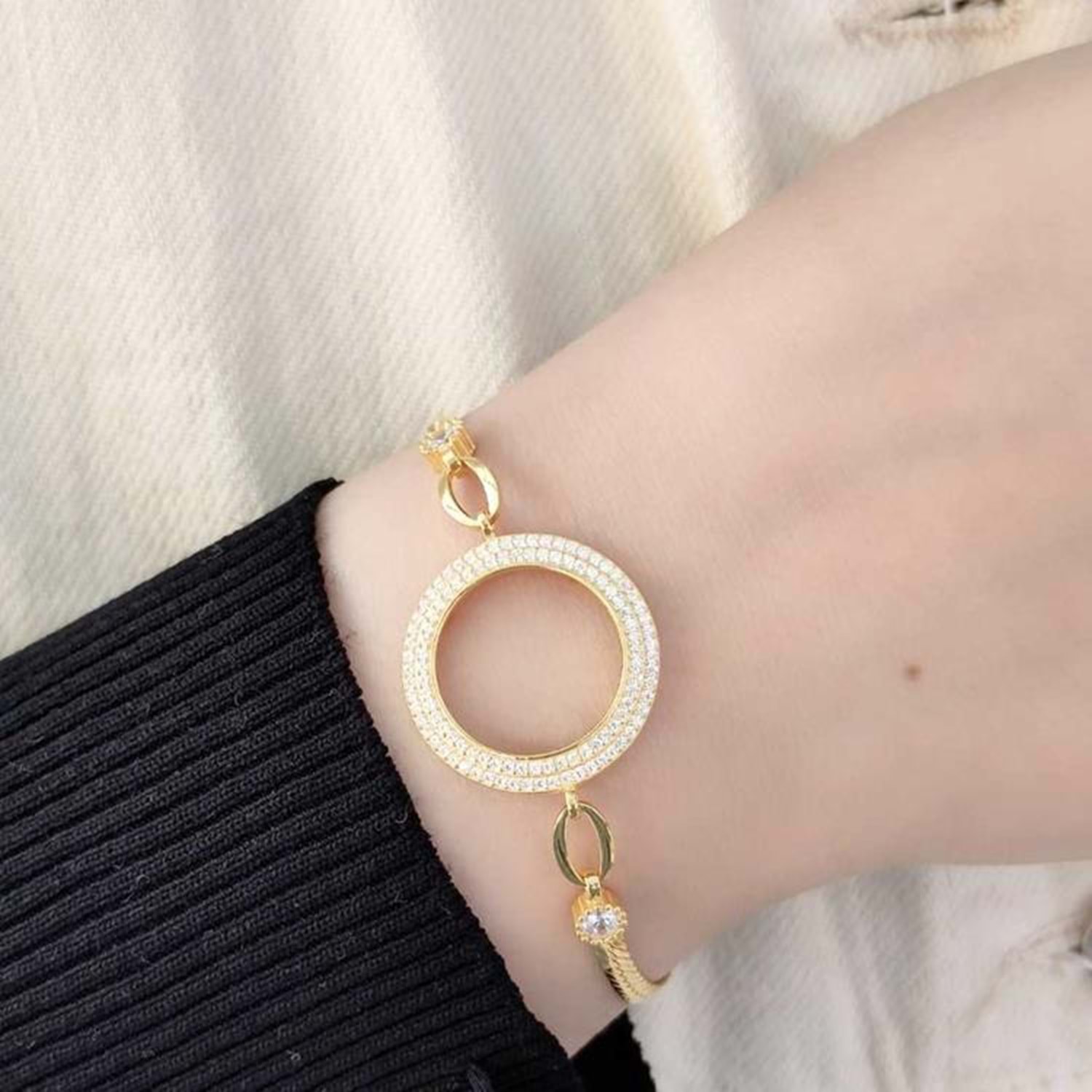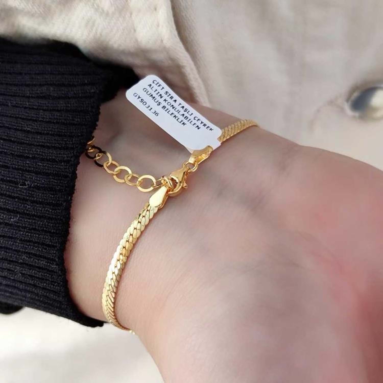 ÇİFT SIRA TAŞLI ÇEYREK ALTIN KONULABİLEN GÜMÜŞ BİLEKLİK