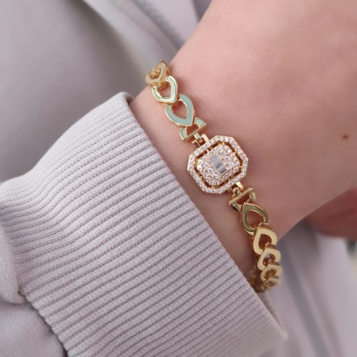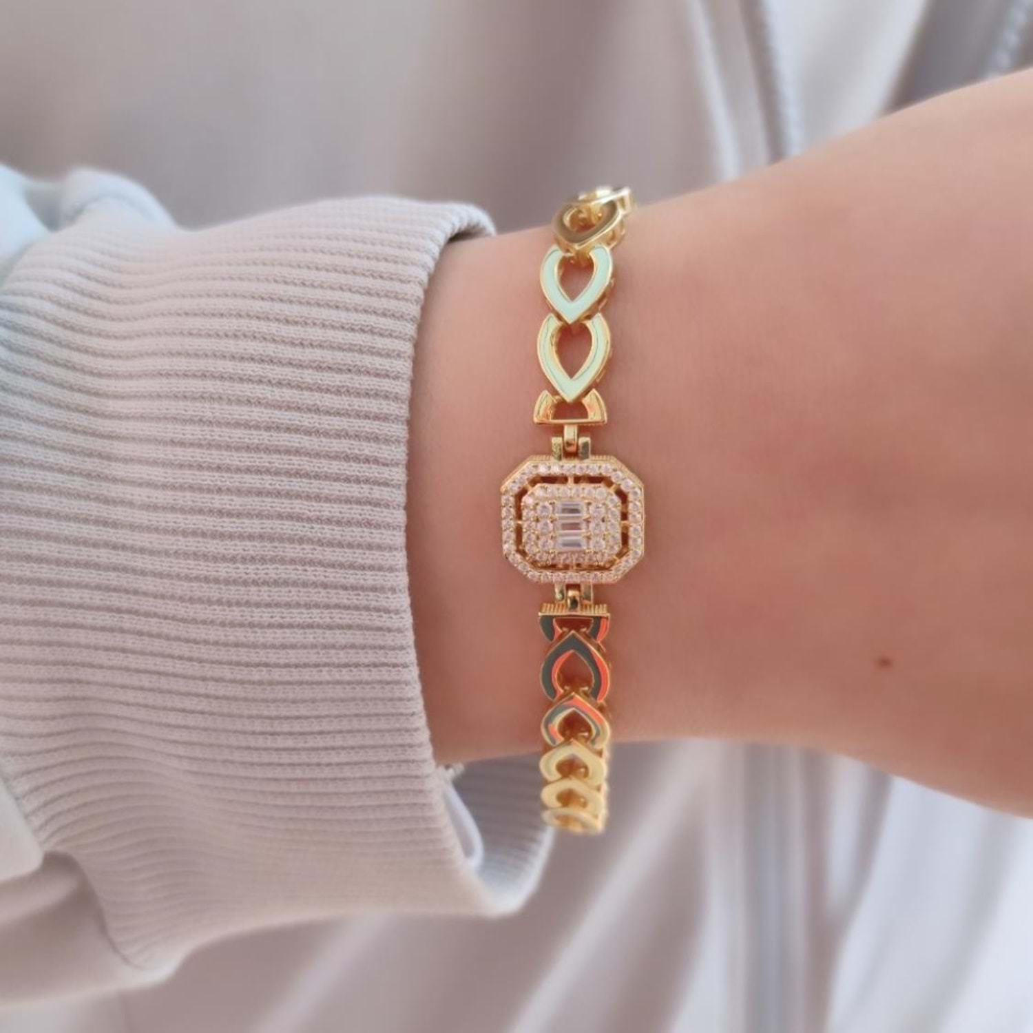 925 AYAR GÜMÜŞ ORT AĞIRLIK : 11,70 gr UZUNLUK : 18,5 CM BAGET BOYUTU : 1,5 CM BİLEKLİK ENİ : 8 MM