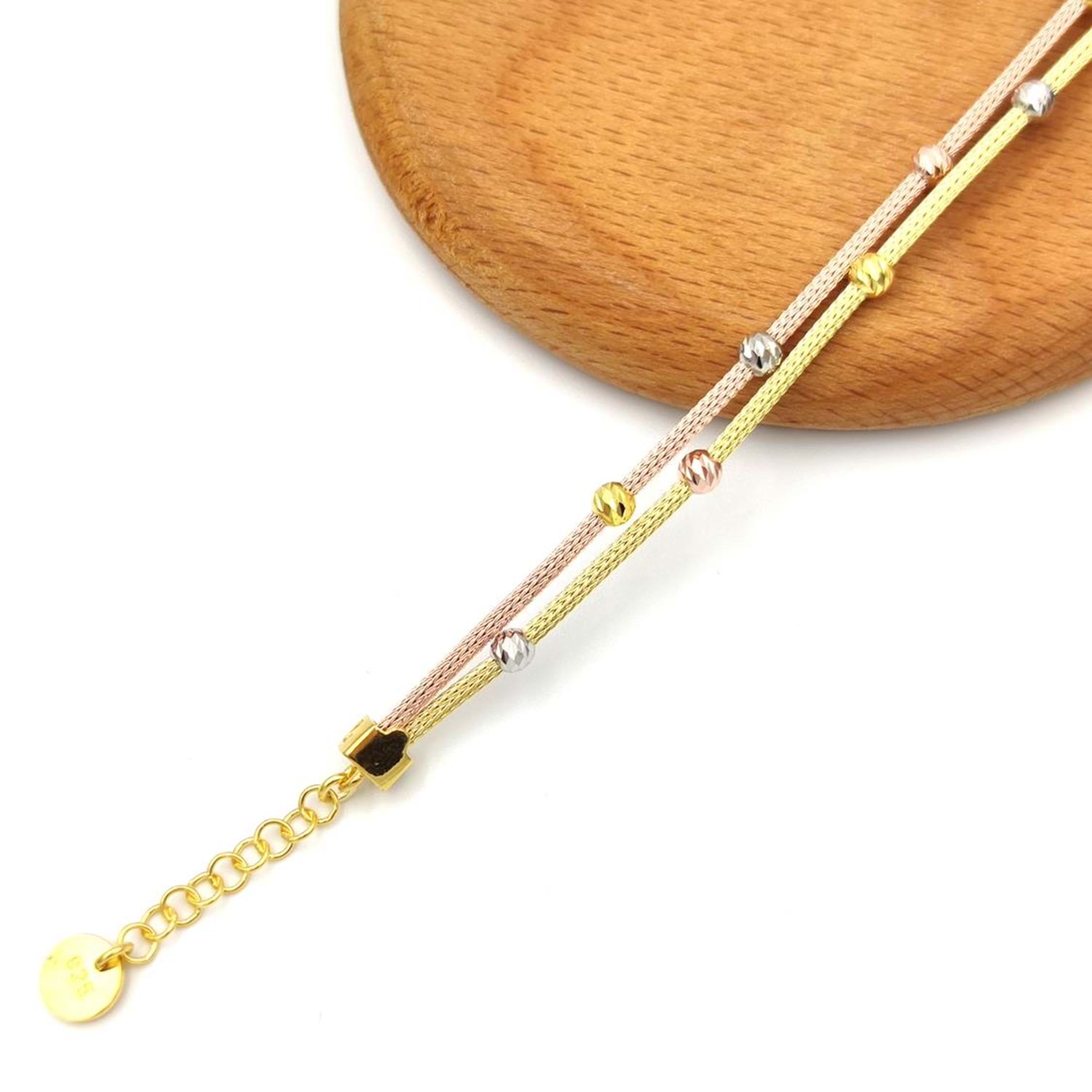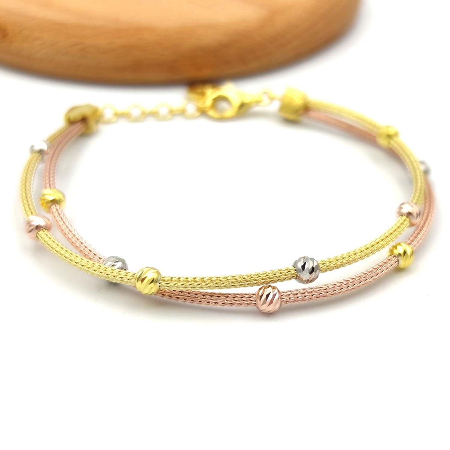 925 AYAR GÜMÜŞ UZUNLUK : 17 CM + 2,5 CM EK UZATMA HALKASI ALTIN VE ROSE ALTIN KAPLAMA ÇİFT SIRA DORİCA BİLEKLİK GRAM : 6,60 GR