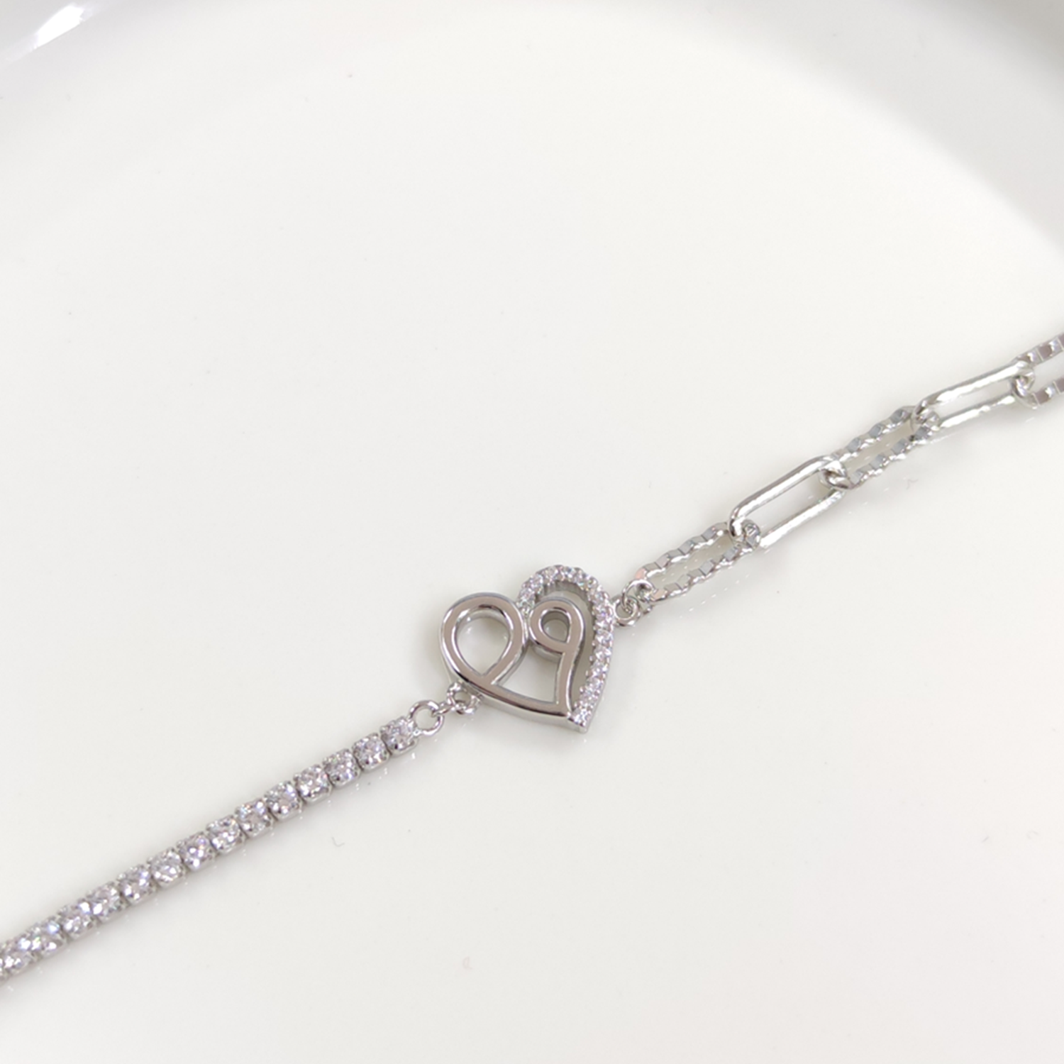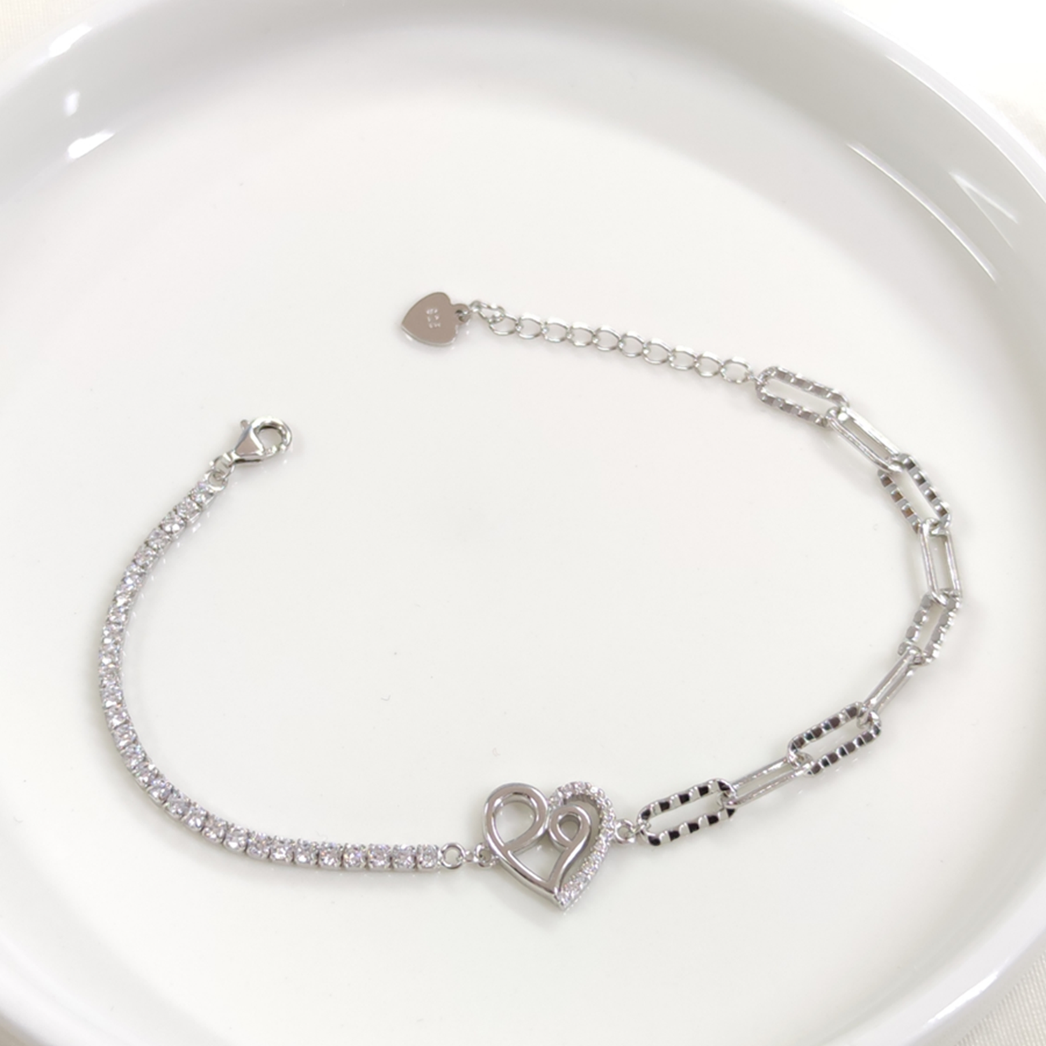 İTHAL ATAÇ ZİNCİRLİ KALP SU YOLU GÜMÜŞ BİLEKLİK 17+3 CM
