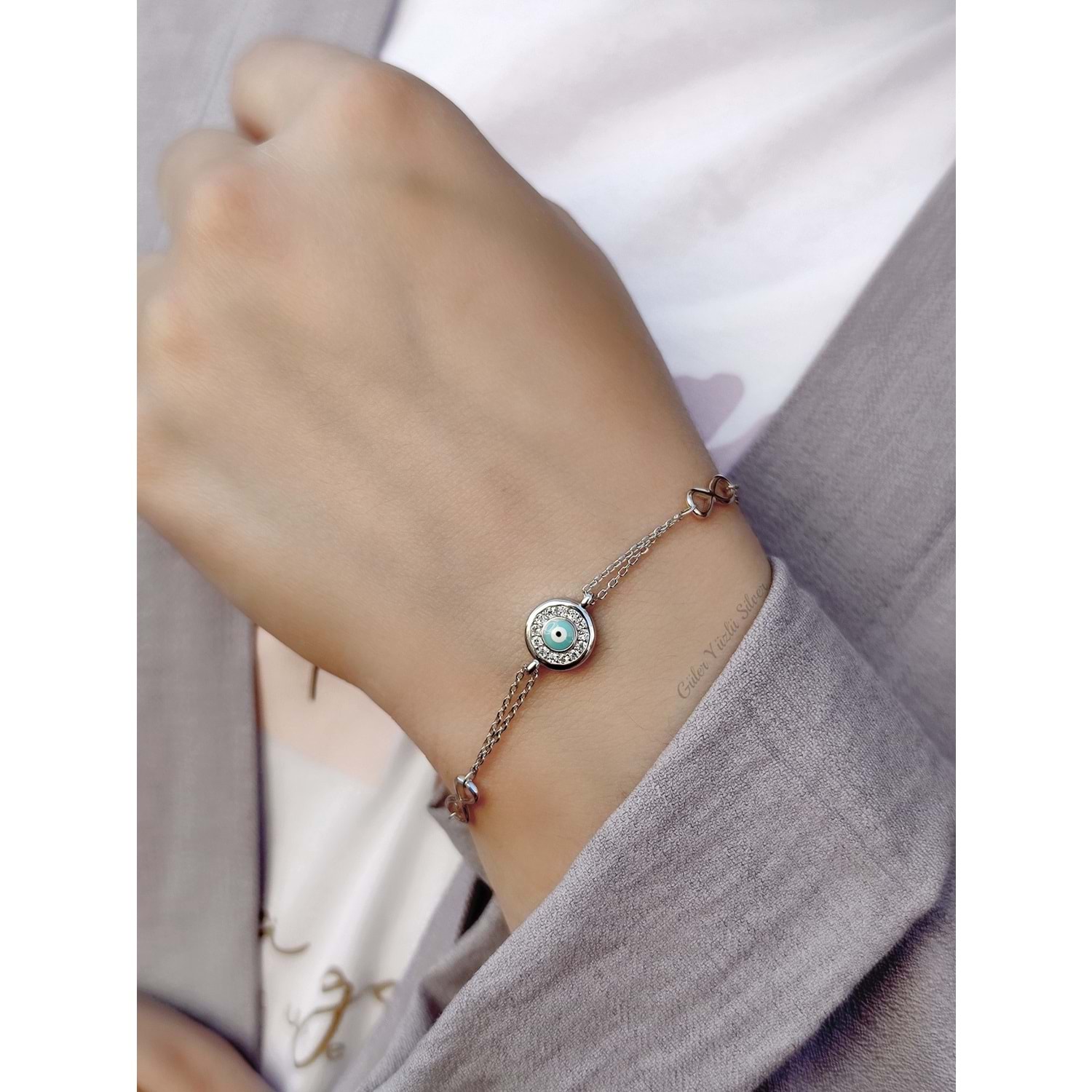 İTHAL SONSUZLUK VE MİNELİ GÖZ GÜMÜŞ BİLEKLİK - RODYUM KAPLAMA