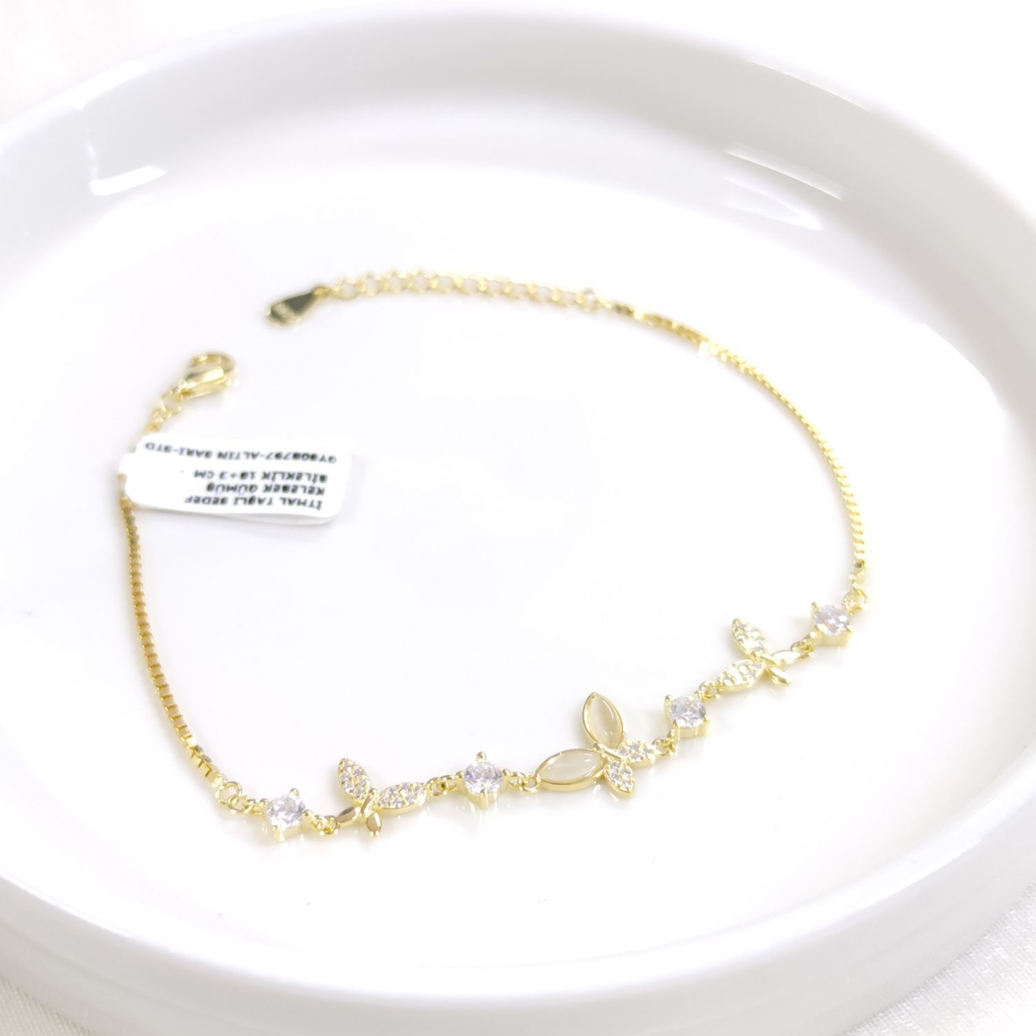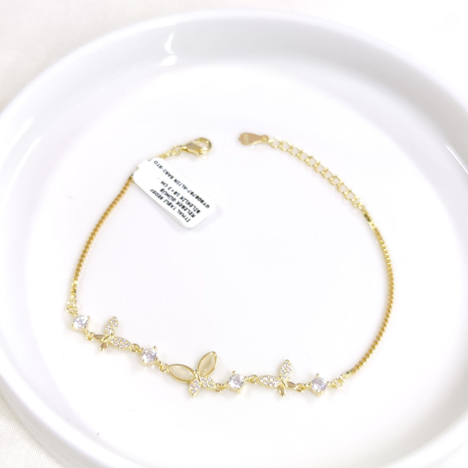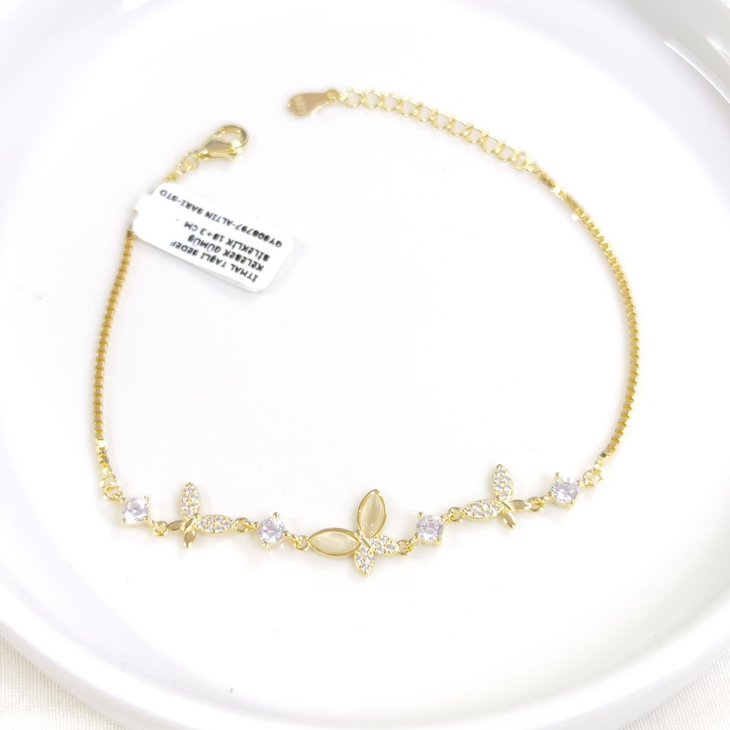 İTHAL TAŞLI SEDEF KELEBEK GÜMÜŞ BİLEKLİK 18+3 CM - ALTIN SARI