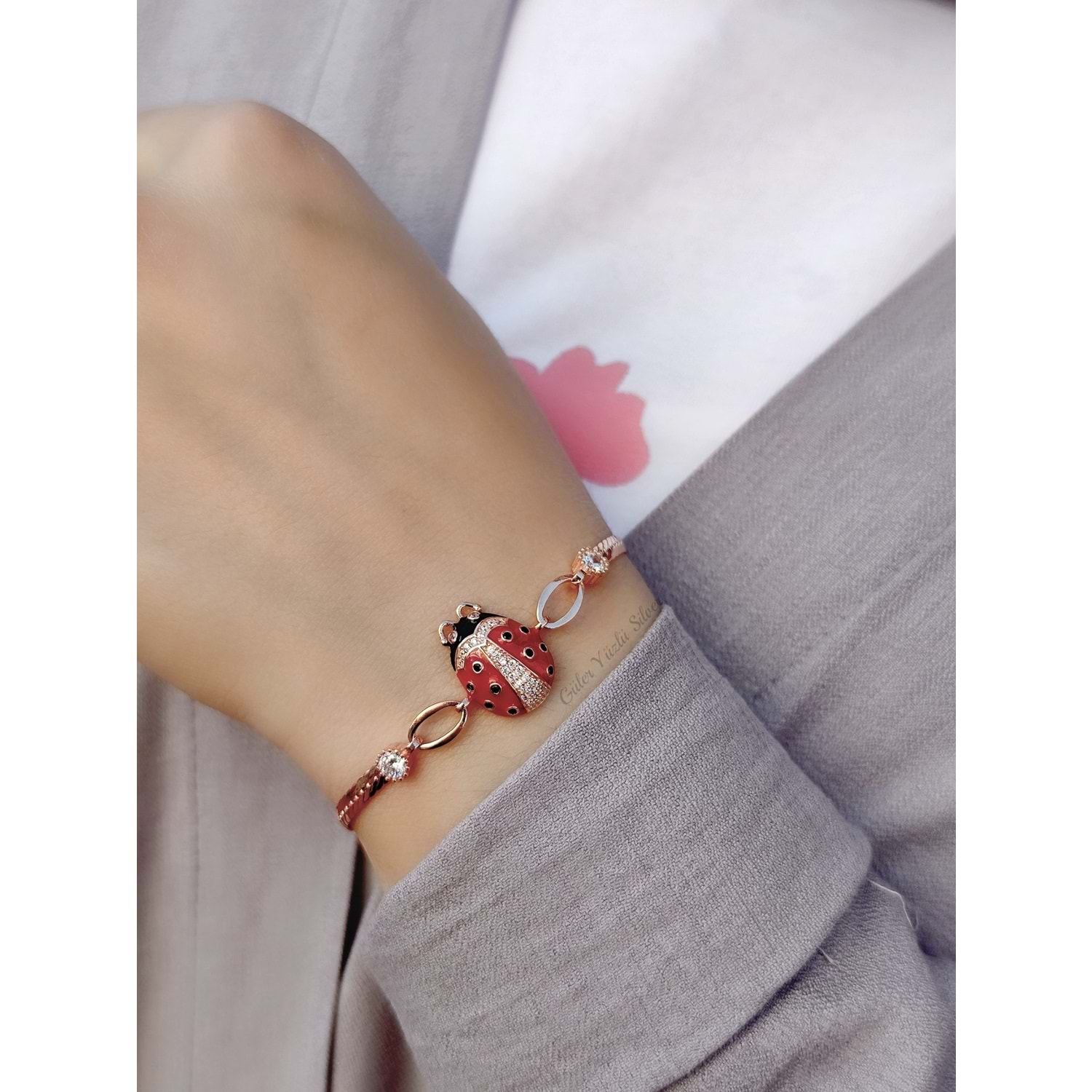 İTHAL YASSI ZİNCİR UĞUR BÖCEĞİ GÜMÜŞ BİLEKLİK