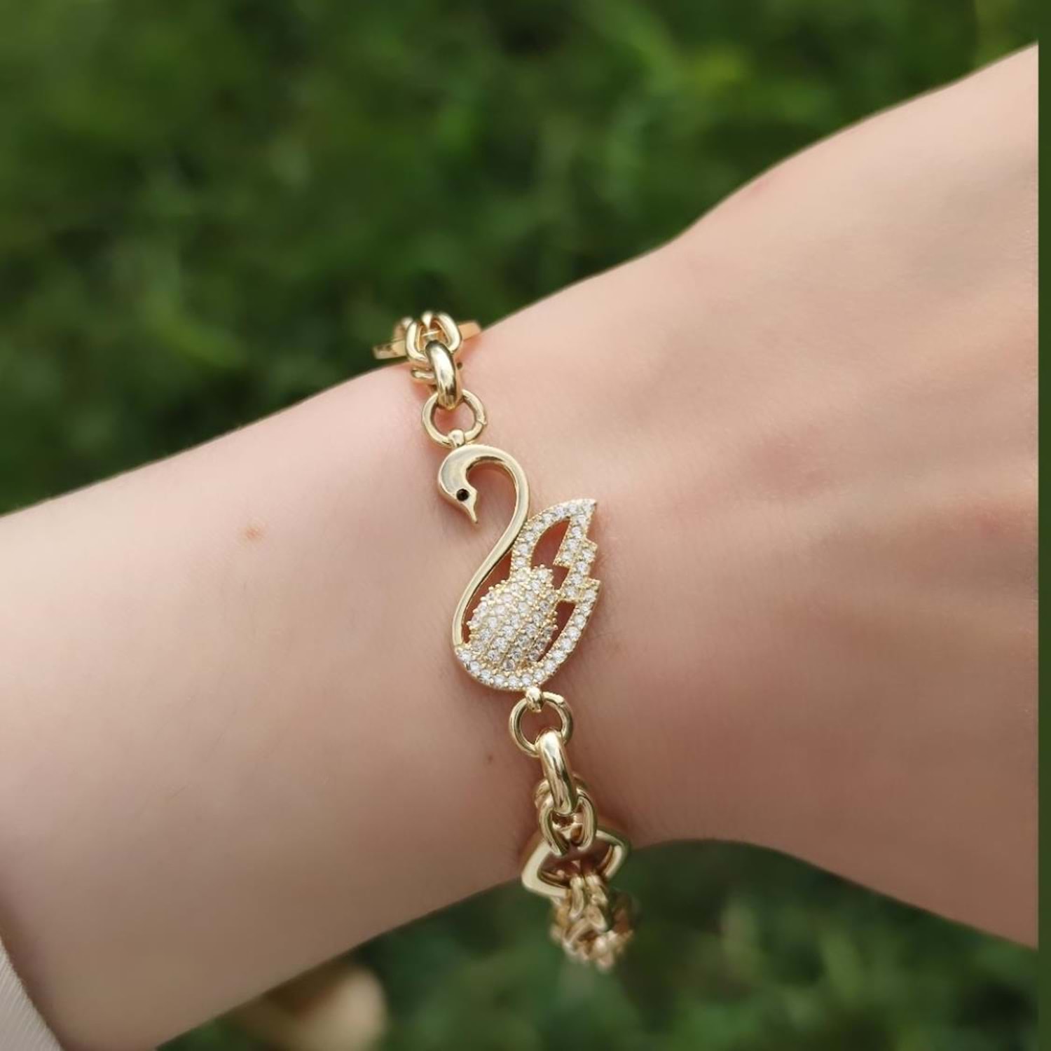 925 AYAR GÜMÜŞ ZİRKON TAŞLI KUĞU GÜMÜŞ HALLOW BİLEKLİK ORT GRAM : 10,80 GR UZUNLUK : 20 CM KİMYASAL ÜRÜNLERLE TEMASINDAN KAÇINILMALIDIR.