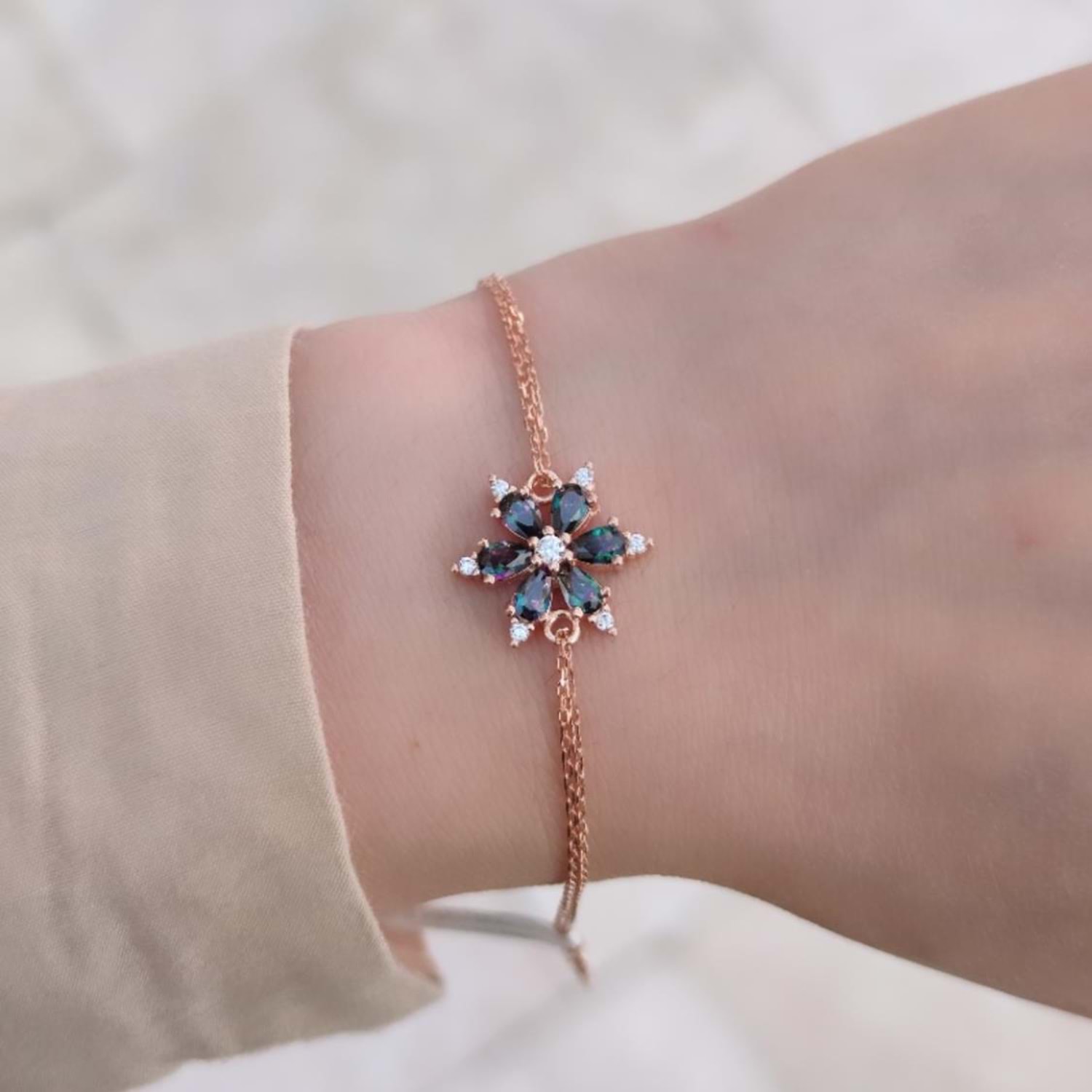 MİSTİK TOPAZ TAŞLI LOTUS GÜMÜŞ BİLEKLİK - ROSE BAKIR