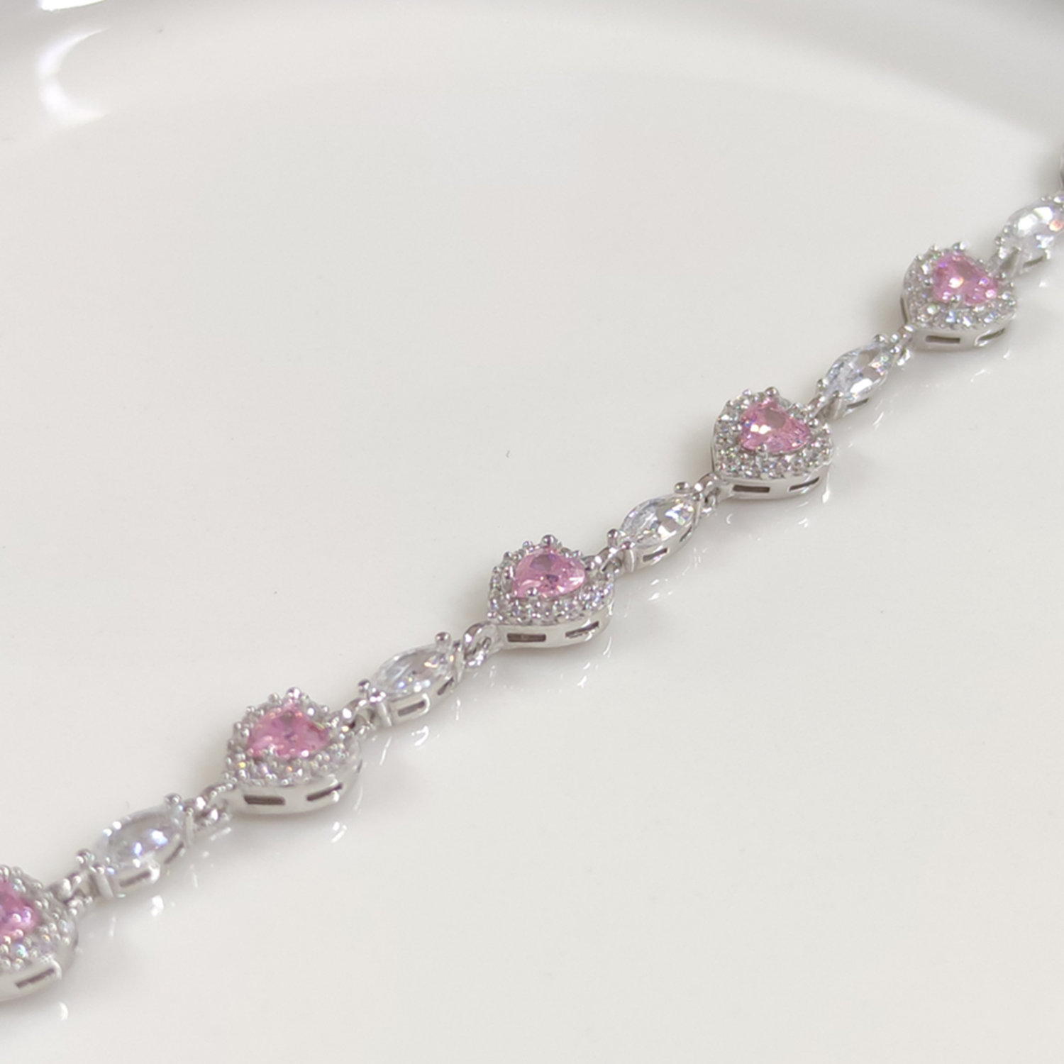 PEMBE TAŞLI KALP MEKİK SU YOLU GÜMÜŞ BİLEKLİK 17+3 CM
