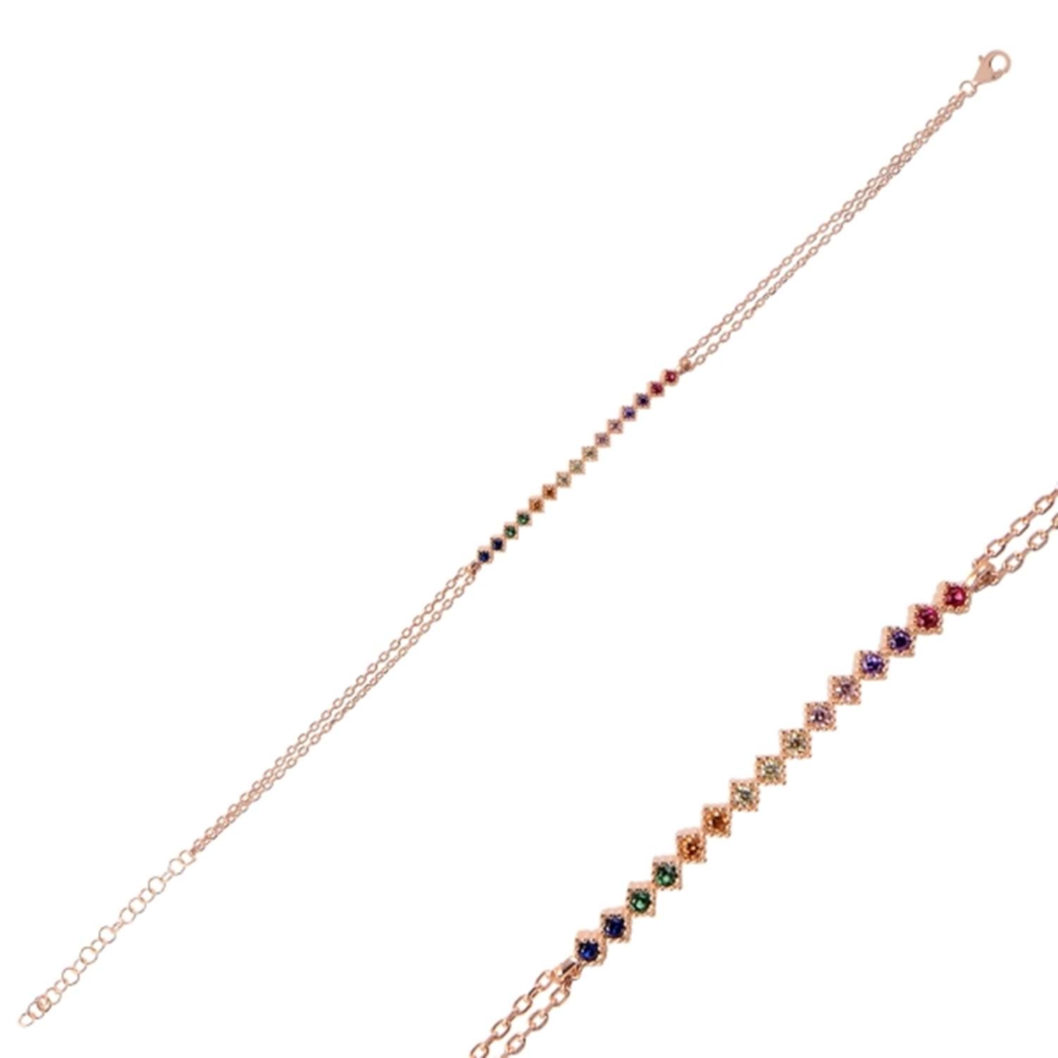 RENKLİ ZİRKON TAŞLI GÜMÜŞ BİLEKLİK G0478