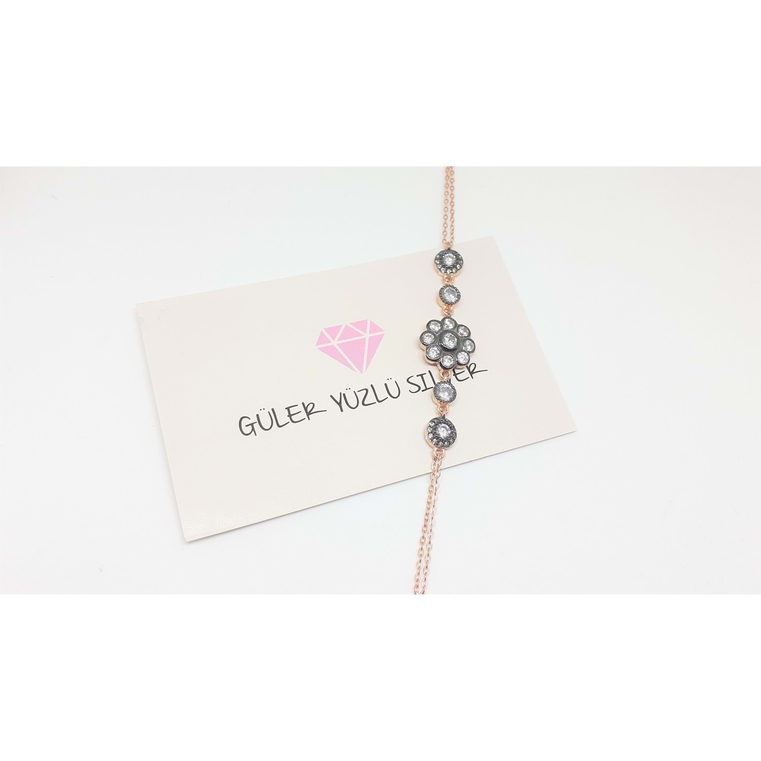 ROSE ELMAS MONTURLU ÇİÇEK GÜMÜŞ BİLEKLİK