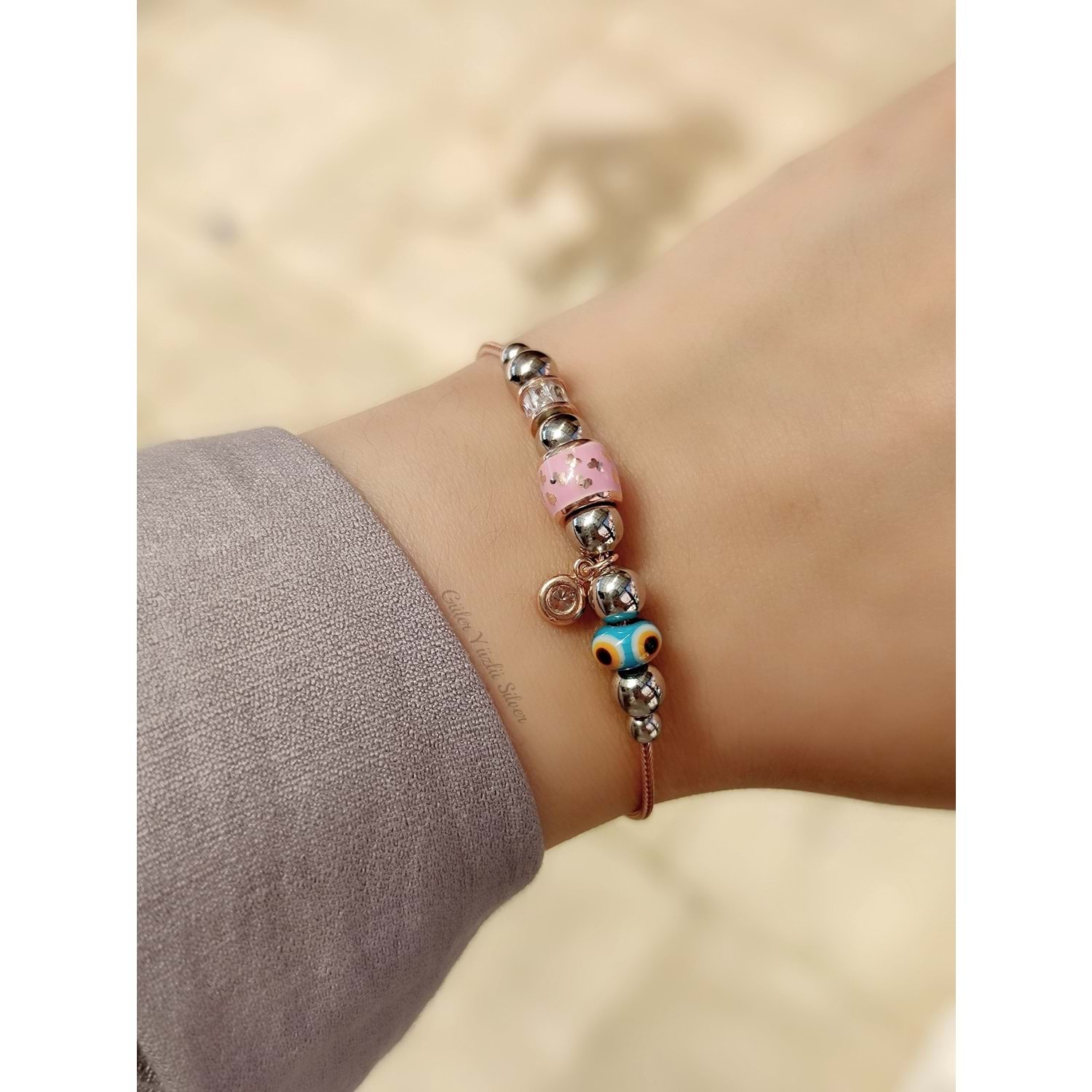 SALLANTILI TOP PEMBE MİNELİ GÜMÜŞ BİLEKLİK
