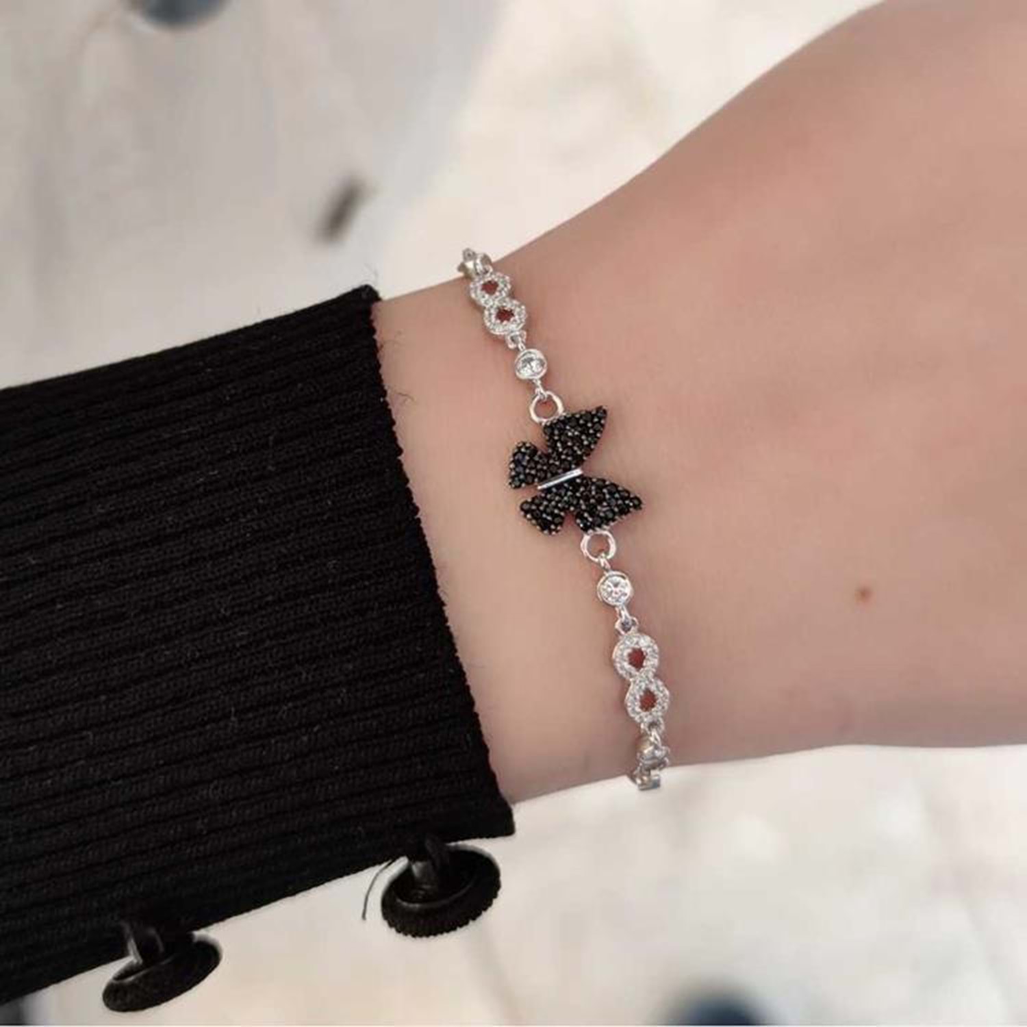 925 AYAR GÜMÜŞ ORT GRAM : 3,84 gr SİYAH TAŞLI KELEBEK GÜMÜŞ BİLEKLİK BİLEKLİK UZUNLUĞU : 16 CM + 3 CM EK UZATMA HALKASI MEVCUTTUR KİMYASAL ÜRÜNLERLE TEMAS ETTİRMEYİNİZ SİPARİŞLERİNİZ İSTİSNALAR HARİÇ AYNI GÜN İÇİNDE KARGOYA TESLİM EDİLMEKTEDİR.