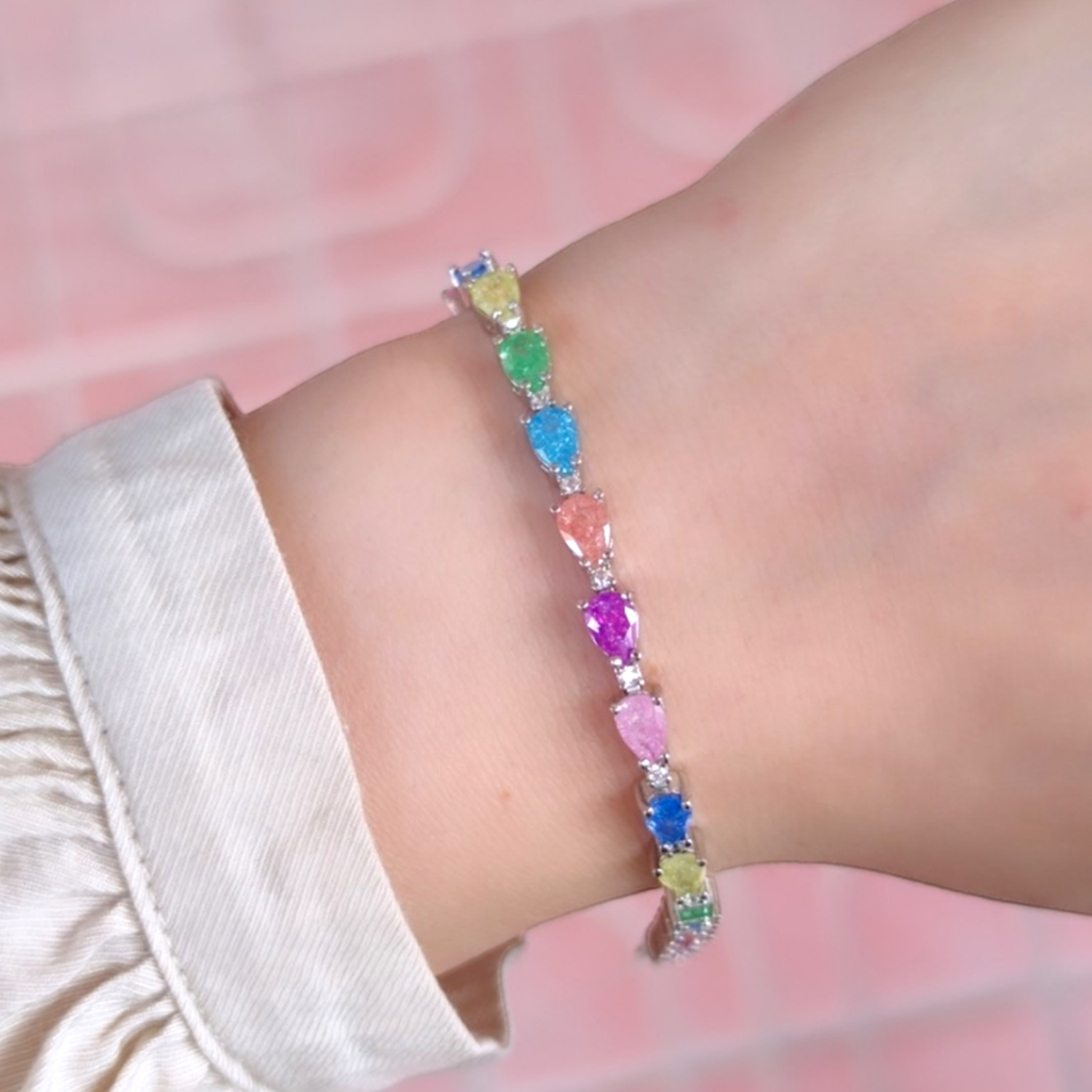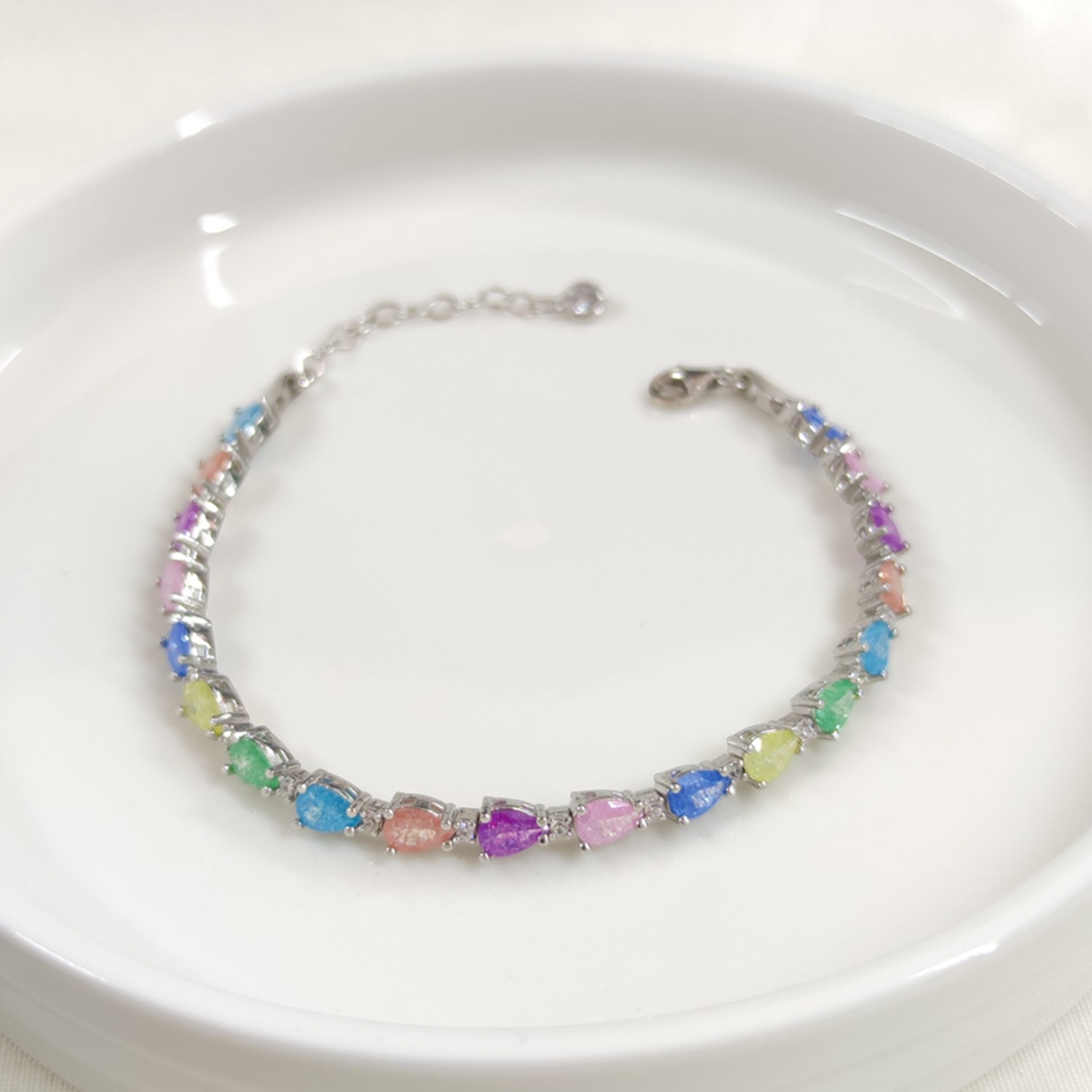 SOFT RENKLİ DAMLA SU YOLU GÜMÜŞ BİLEKLİK 17 + 3 CM