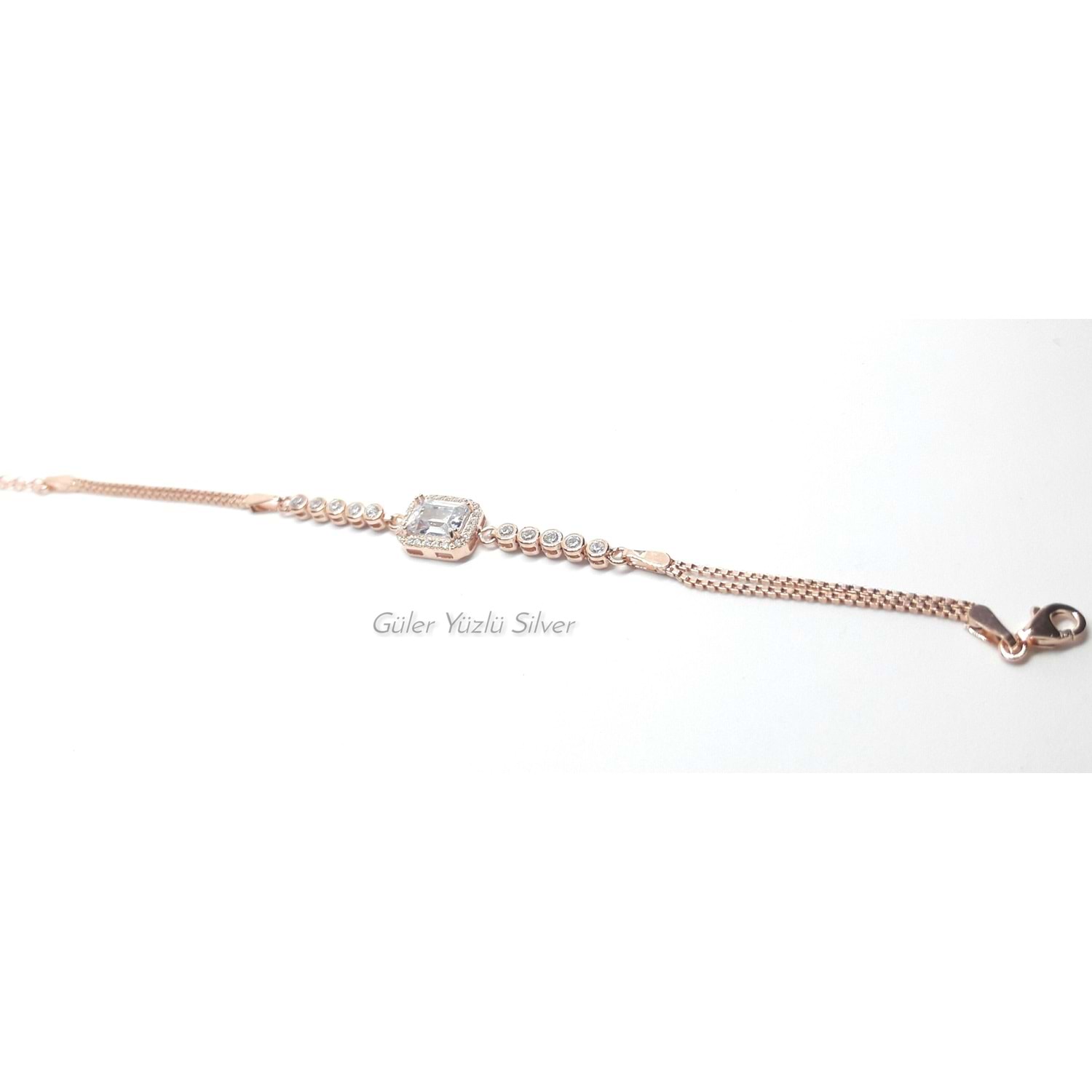 SU YOLU BAGET TAŞLI KÜP GÜMÜŞ BİLEKLİK