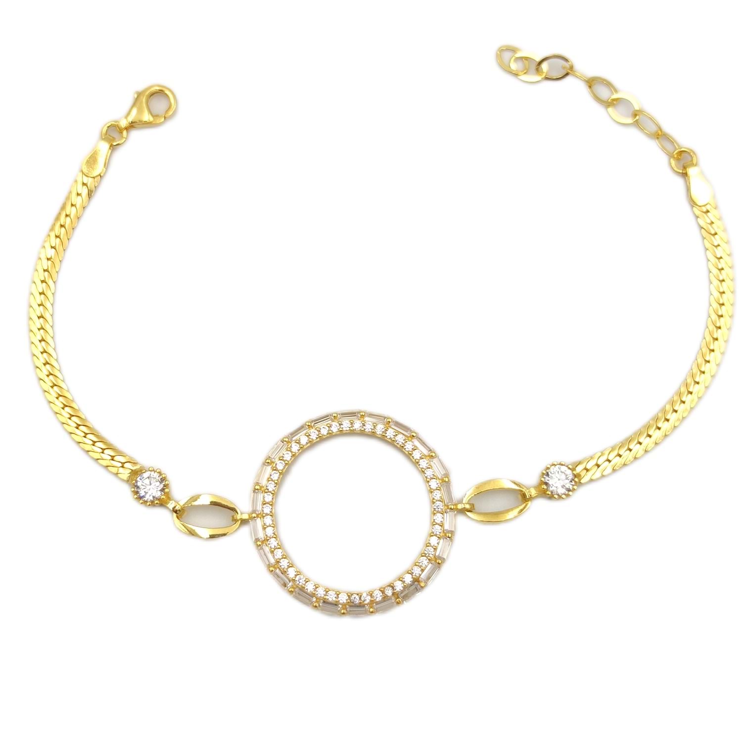 YARIM ALTIN KONULABİLEN YASSI ZİNCİRLİ BAGET DETAY GÜMÜŞ BİLEKLİK YARIMLIK