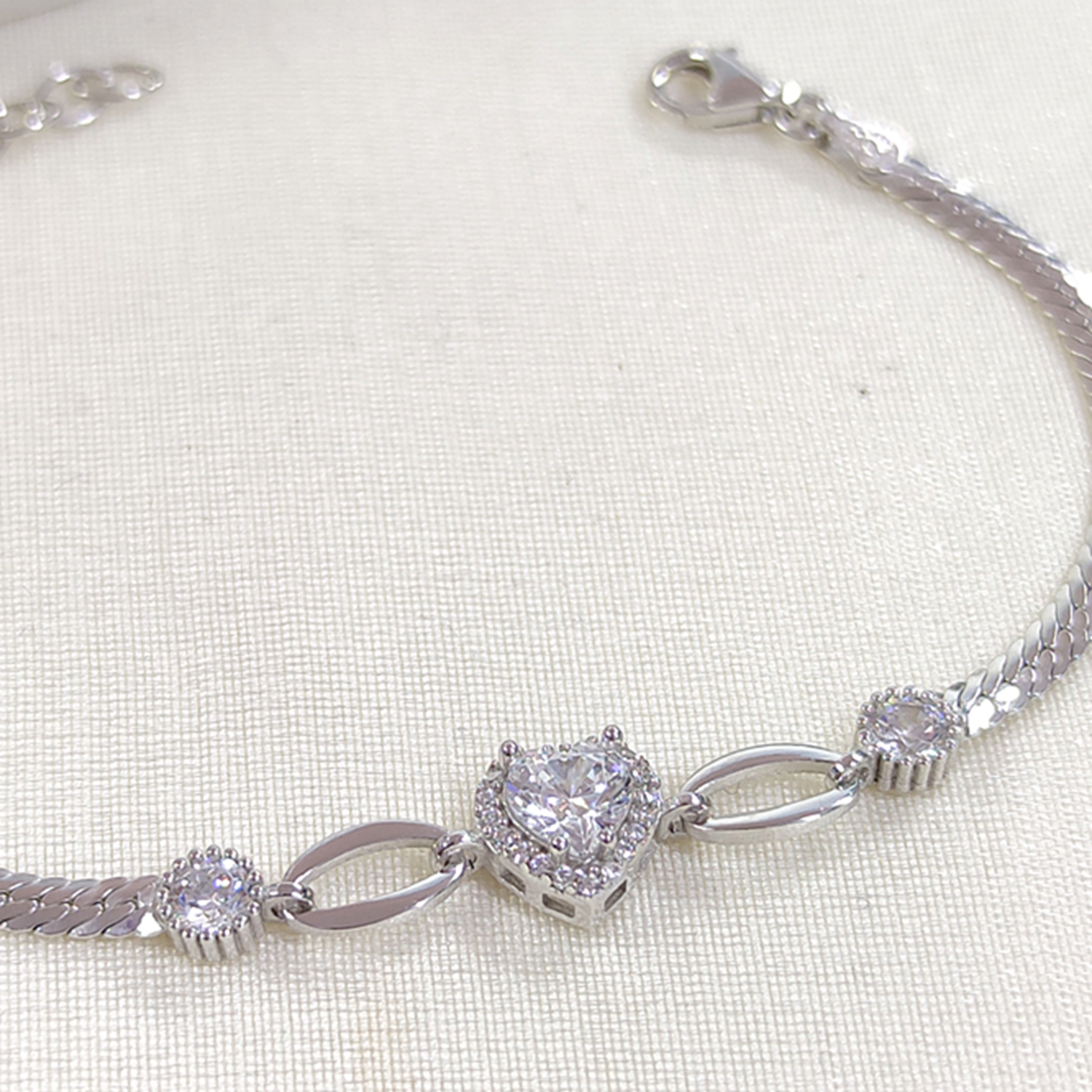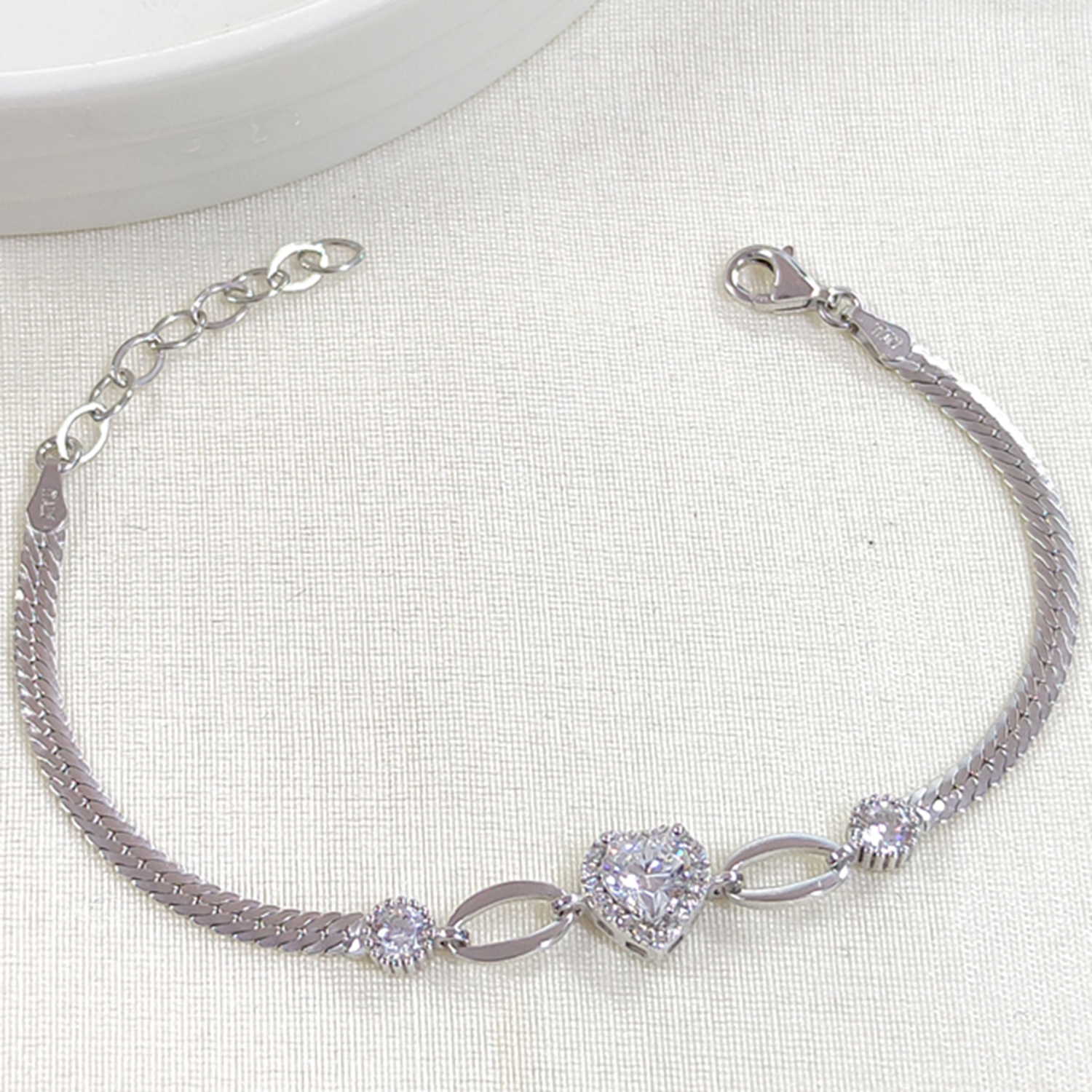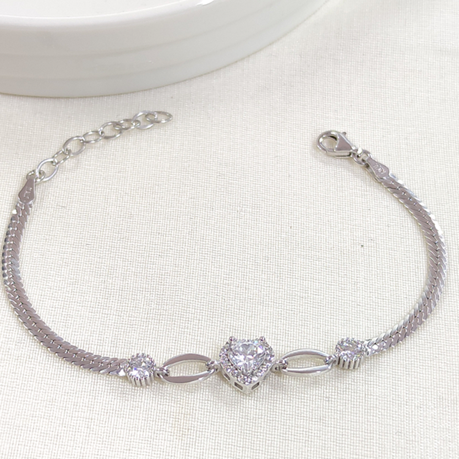 YASSI ZİNCİRLİ TAŞLI KALP GÜMÜŞ BİLEKLİK 16CM+3 - RODYUM BEYAZ