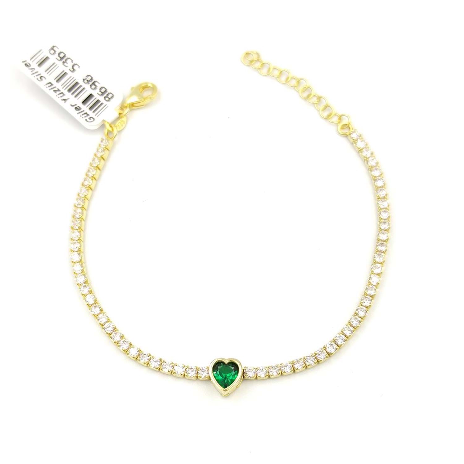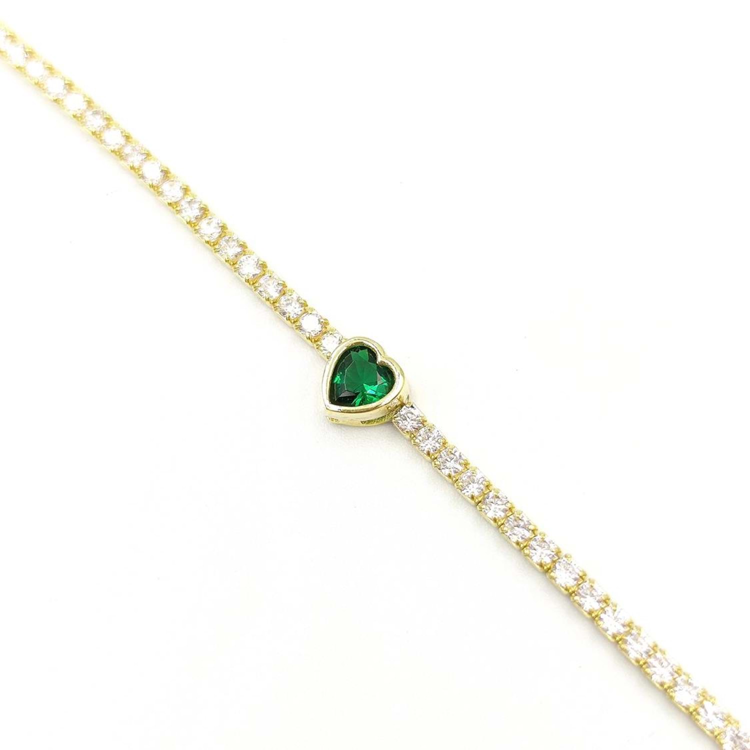 YEŞİL KALP SU YOLU GÜMÜŞ BİLEKLİK - ALTIN SARI