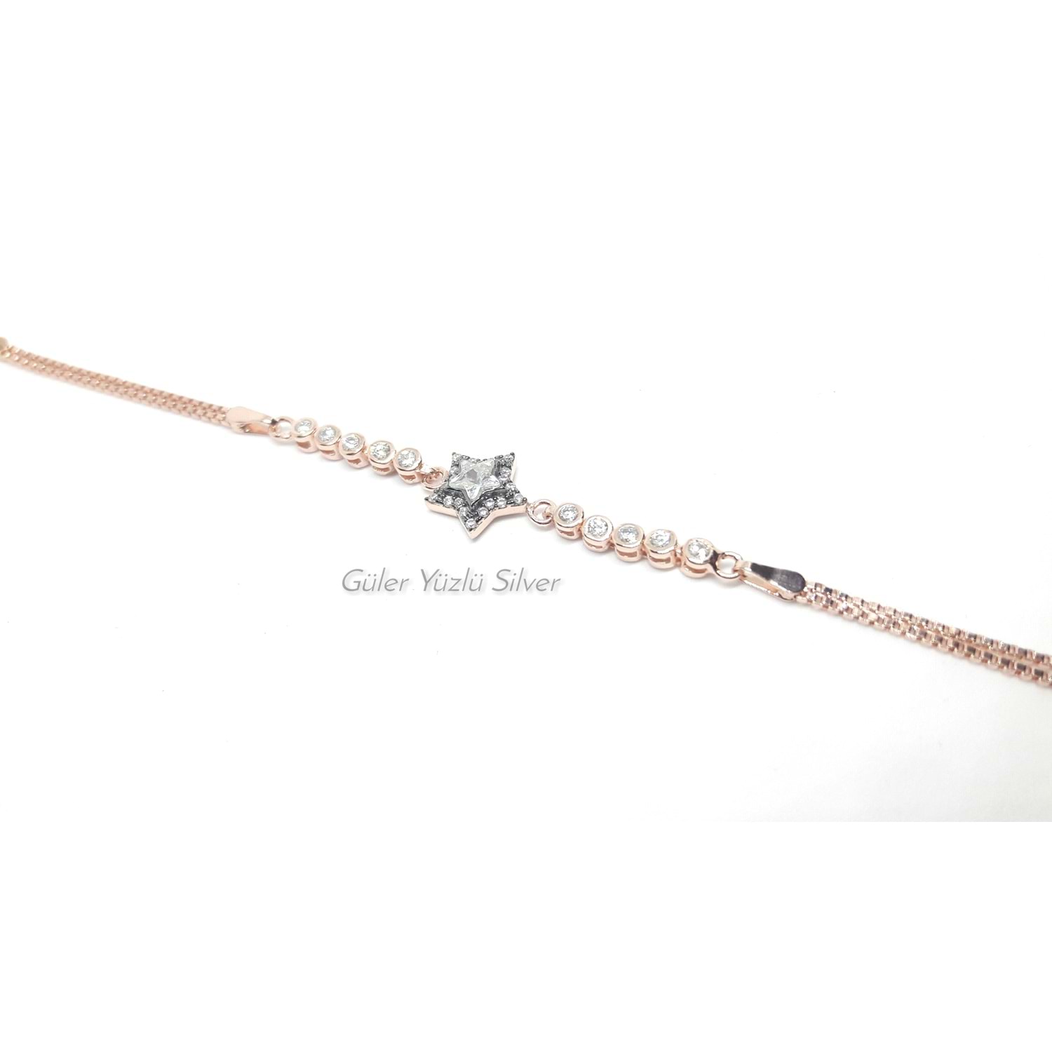 YILDIZ ELMAS MONTÜRLÜ KÜP GÜMÜŞ BİLEKLİK
