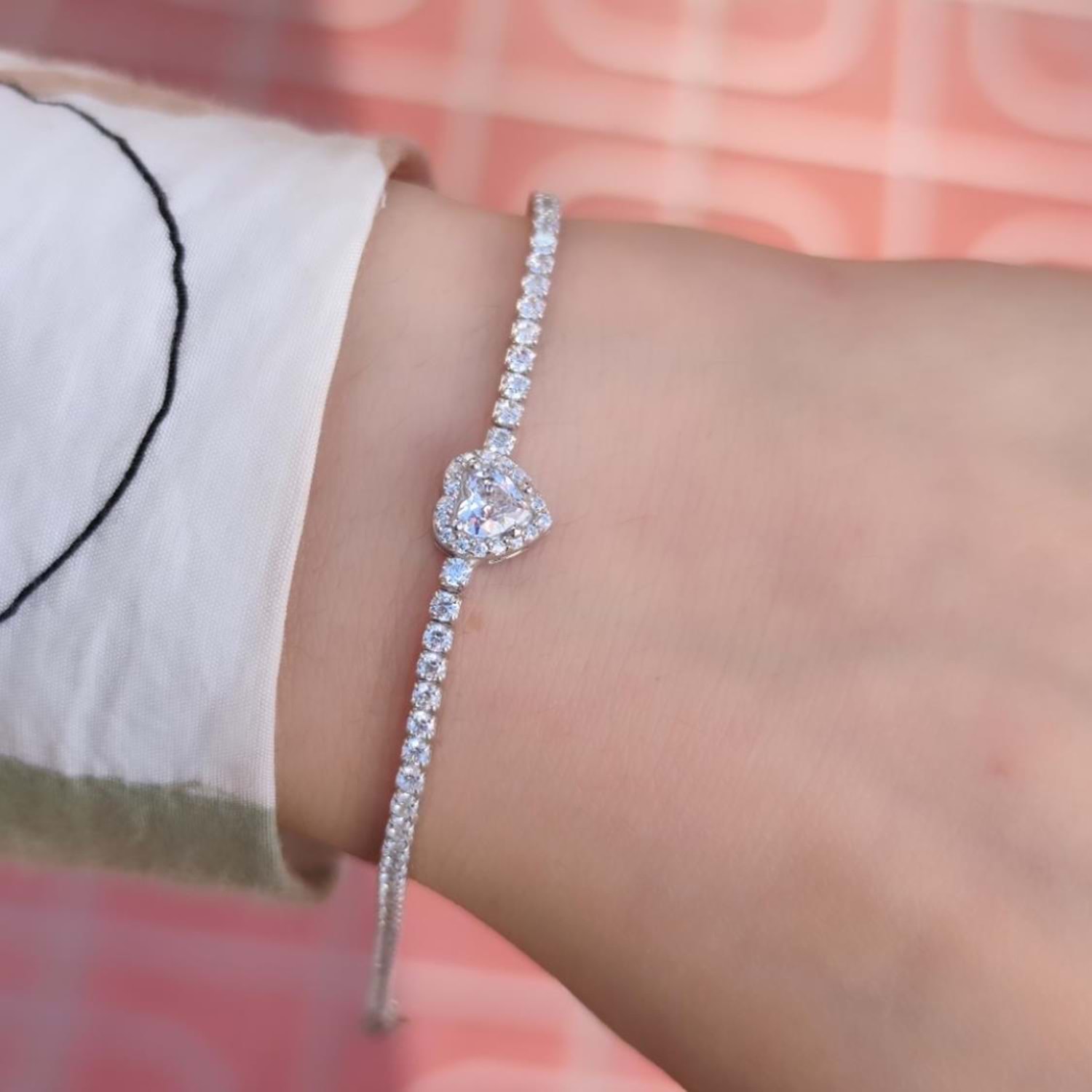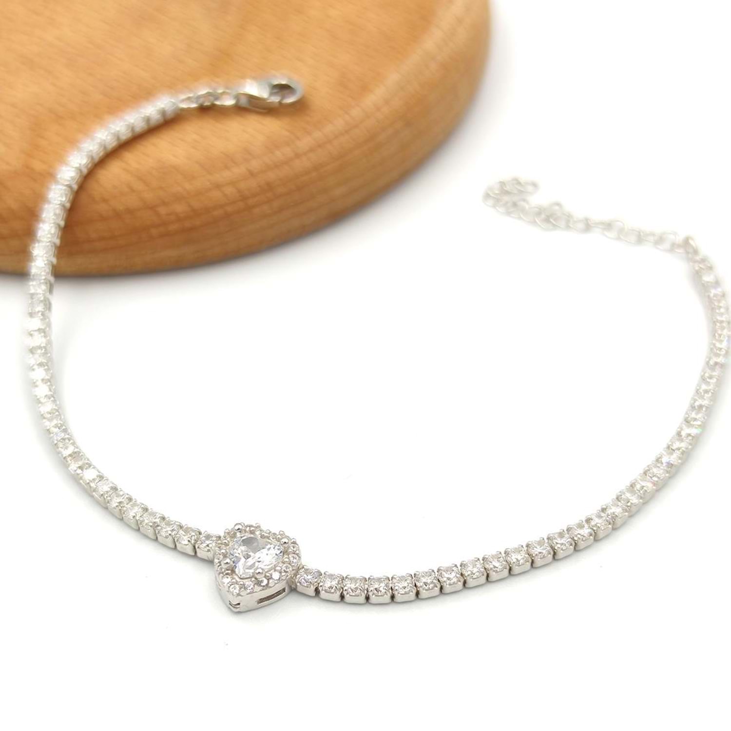 925 AYAR GÜMÜŞ, ORT. GRAM : 4,20 gr UZUNLUK : 16 CM + 3 CM EK UZATMA HALKASI MEVCUTTUR. KALP BOYUTU : 8 MM SU YOLU TAŞ BOYUTU : 2 MM KİMYASAL ÜRÜNLERLE TEMASINDAN KAÇINILMALIDIR.