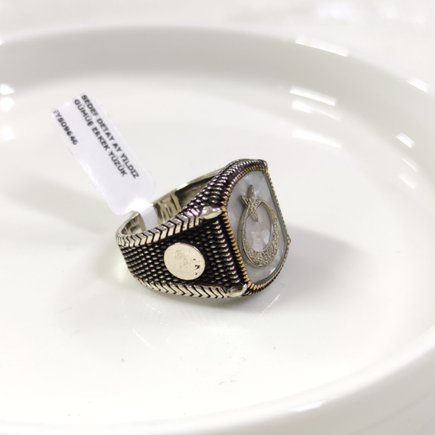 - 925 AYAR GÜMÜŞTÜR. - PARMAK ÖLÇÜNÜZ FARKLI İSE İLETİŞİME GEÇİNİZ. - ÖLÇÜSÜ YAPILAN SİPARİŞLERDE İADE VE DEĞİŞİM YOKTUR. MEVCUT YÜZÜK ÖLÇÜSÜ : 27 NO ORTALAMA GR : 15,86 GR YÜZÜK ÜST BÖLÜM : 21 X 16 MM