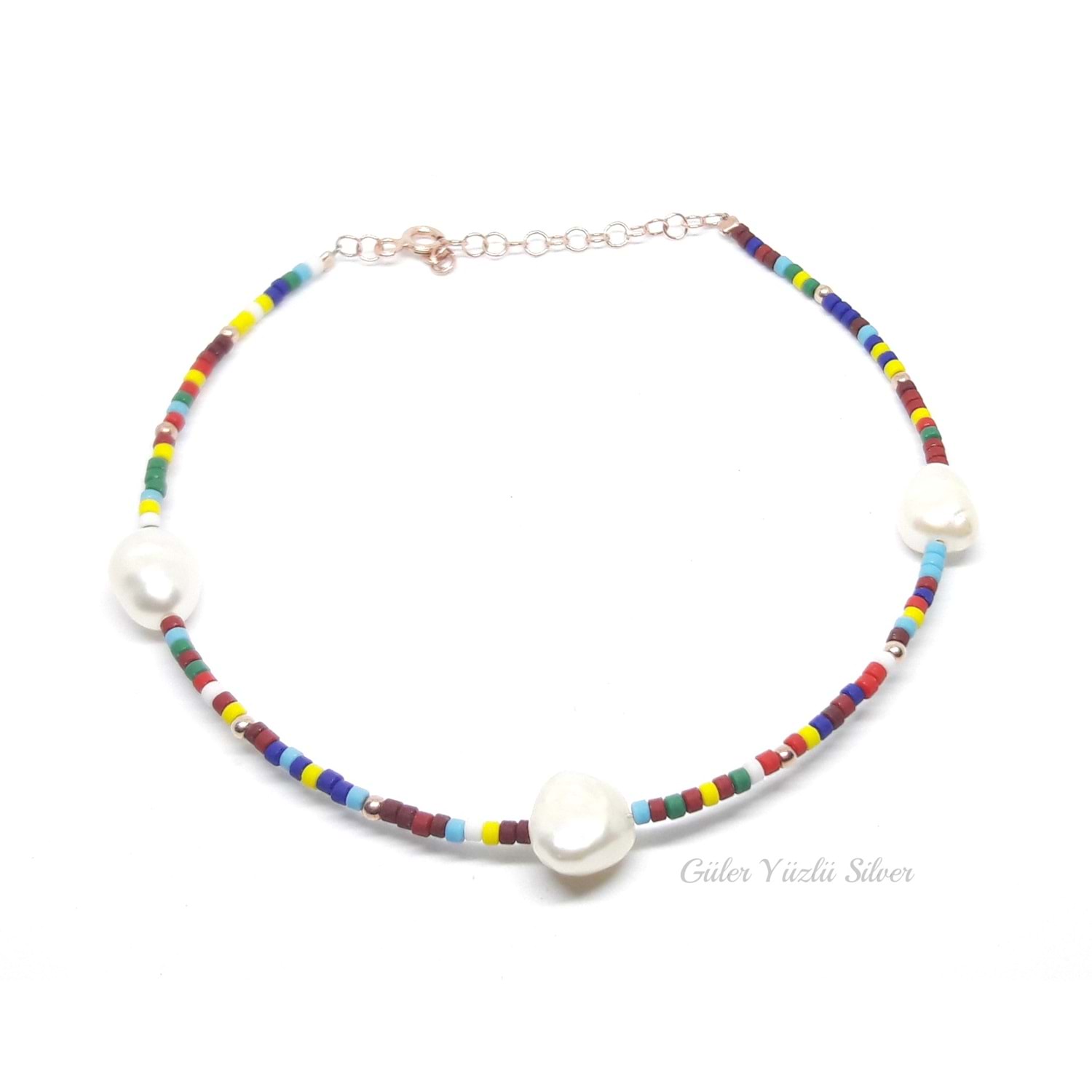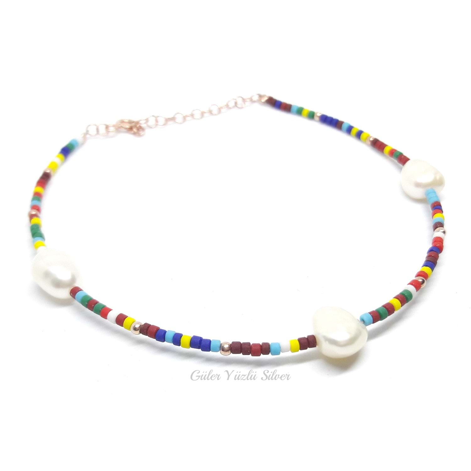 3 İNCİ DETAYLI RENKLİ GÜMÜŞ HALHAL