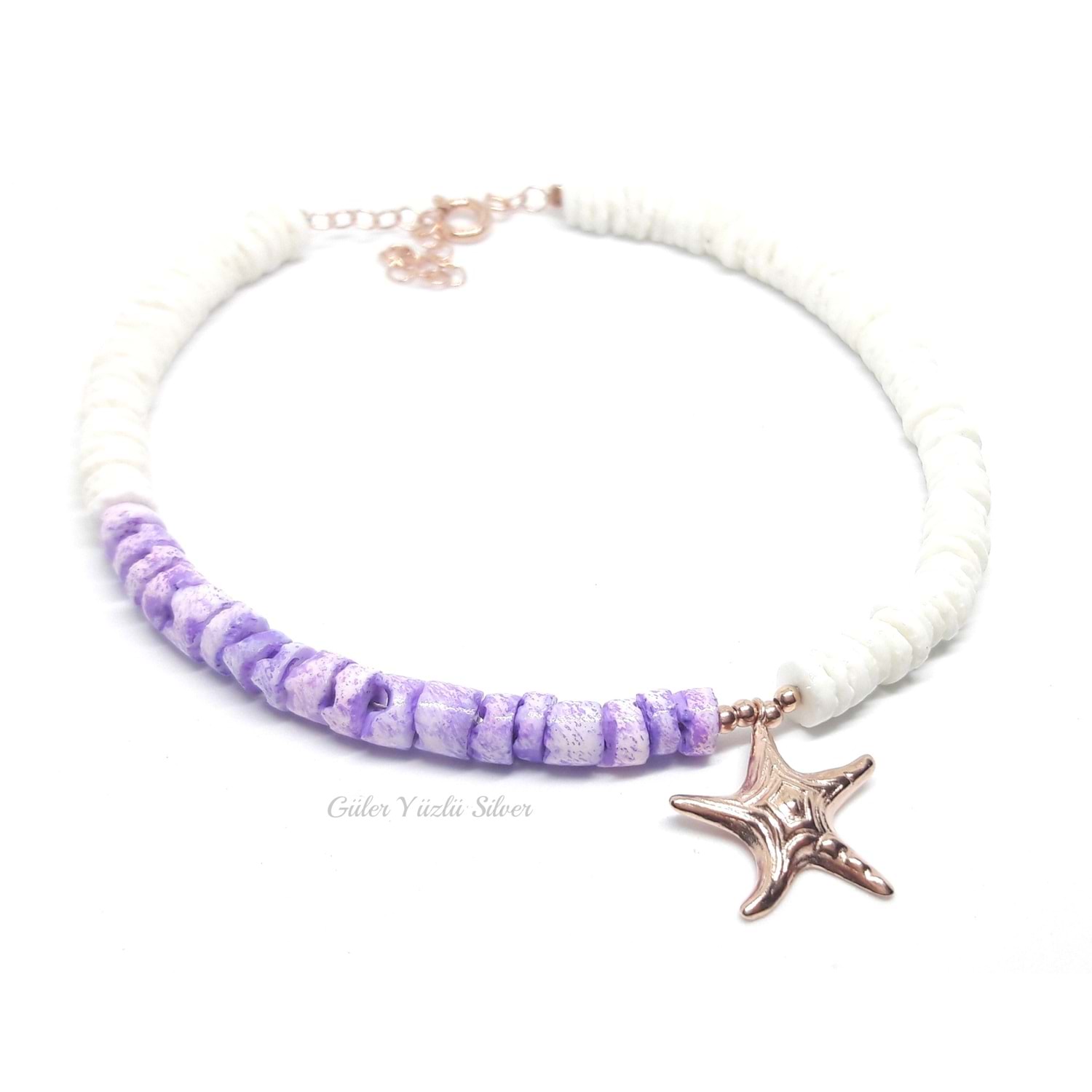 DENİZ YILDIZI MOR BONCUK GÜMÜŞ HALHAL