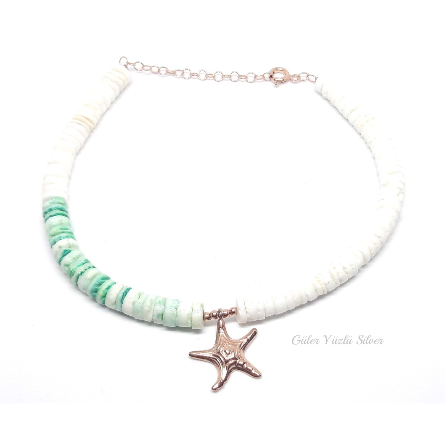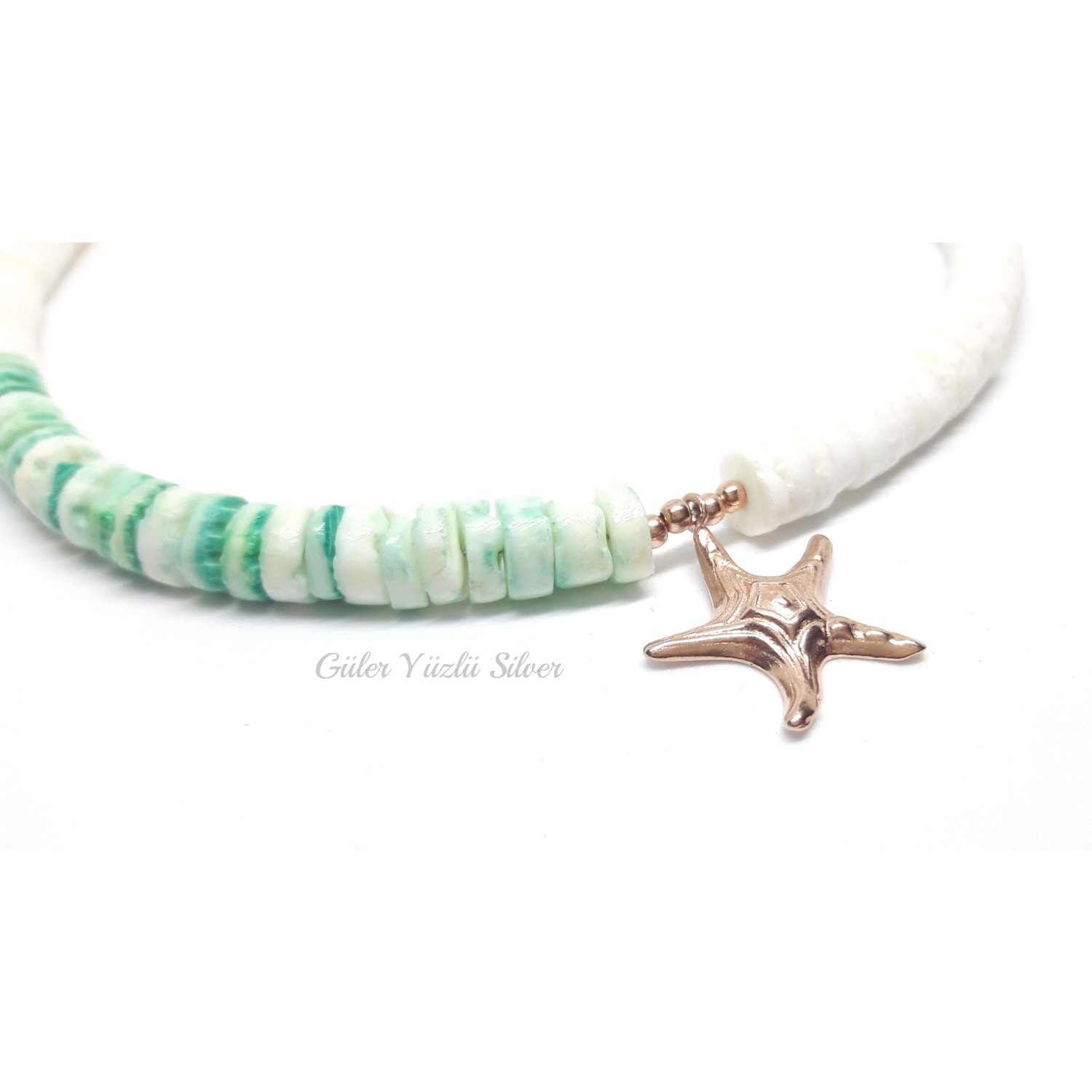 DENİZ YILDIZI YEŞİL BONCUK GÜMÜŞ HALHAL