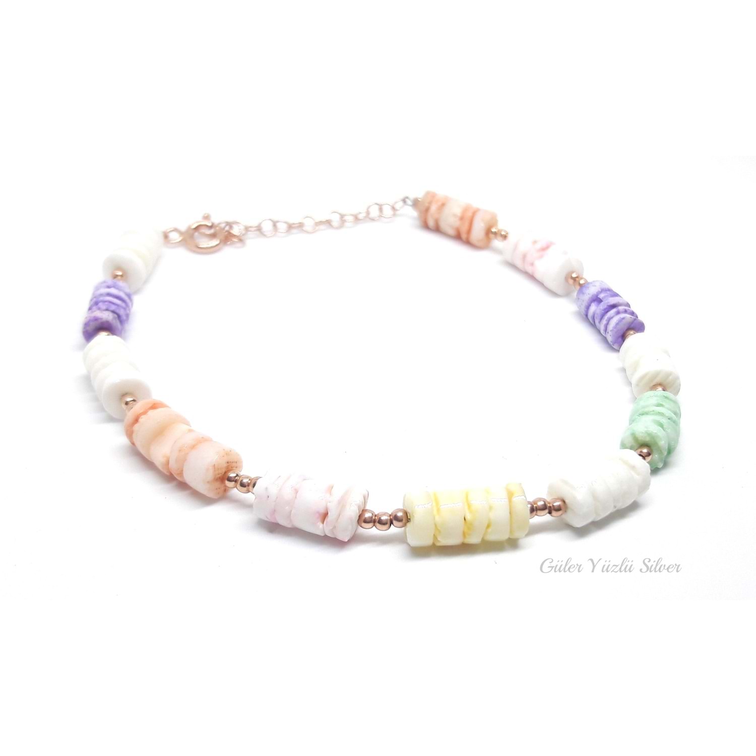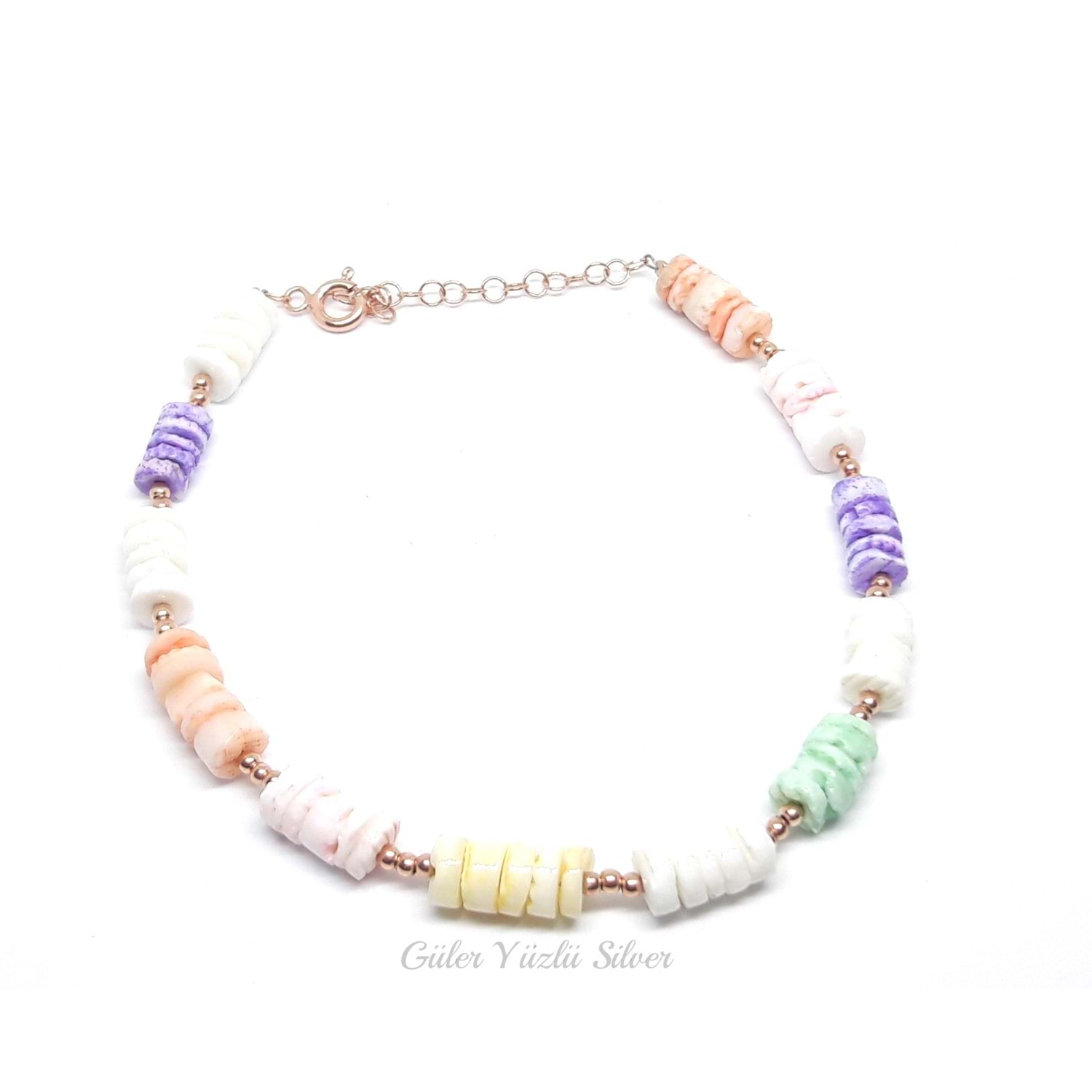TOP DETAYLI RENKLİ BONCUK GÜMÜŞ HALHAL