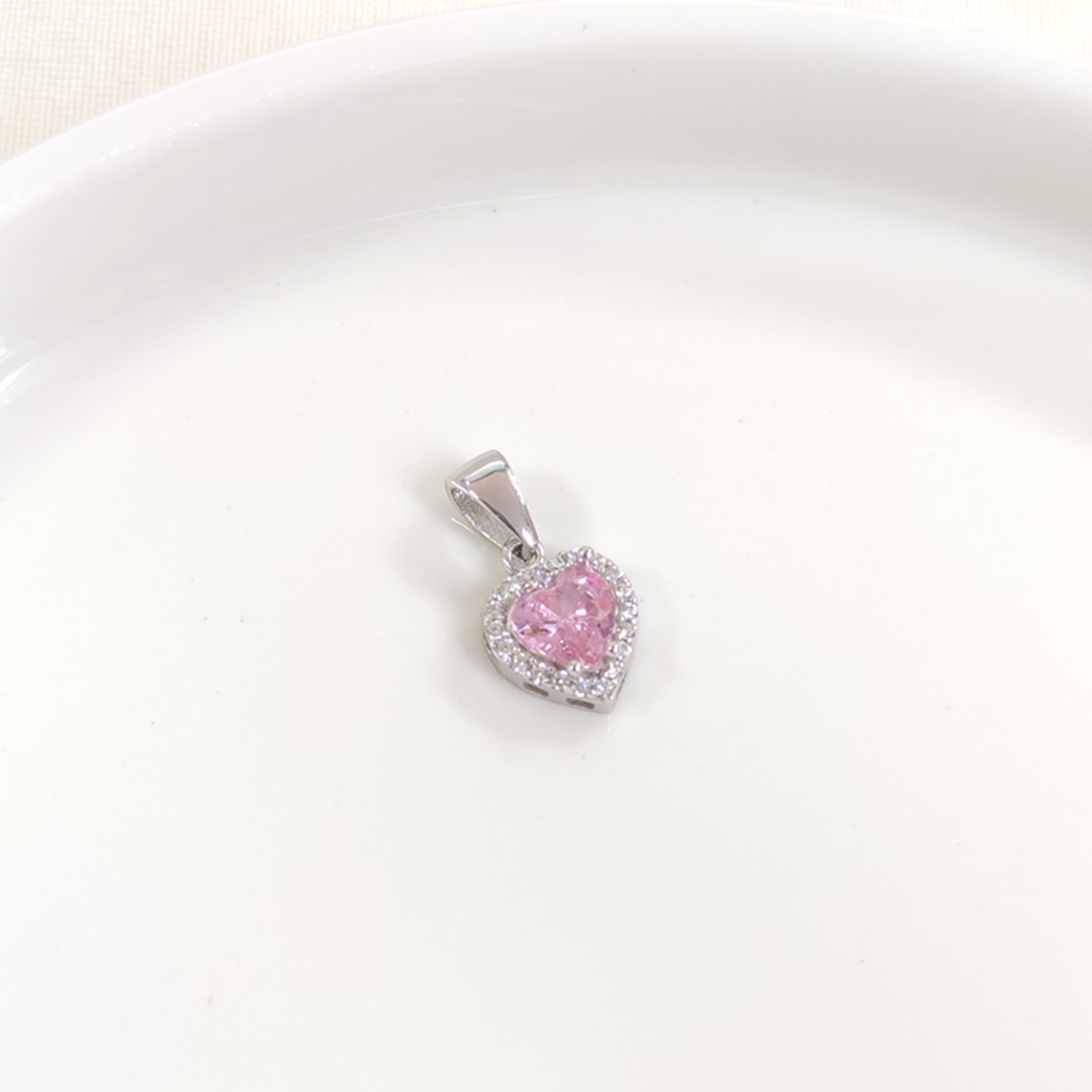 1 CM PEMBE KALP GÜMÜŞ KOLYE UCU
