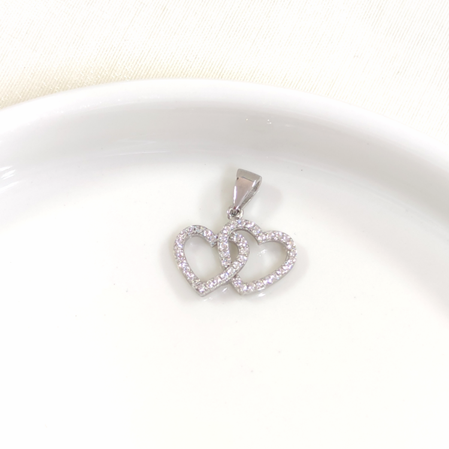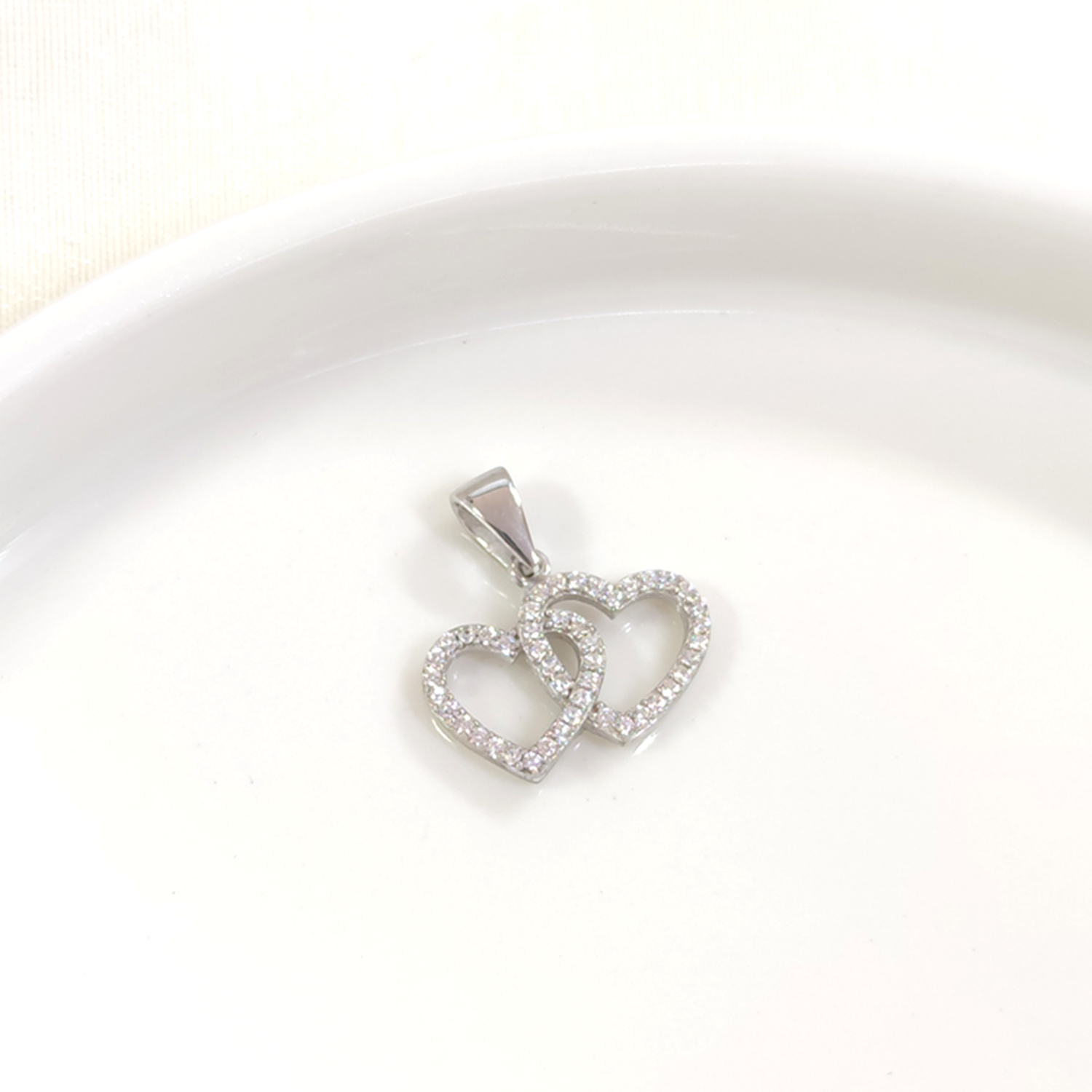 15 MM ÇİFT KALP GÜMÜŞ KOLYE UCU