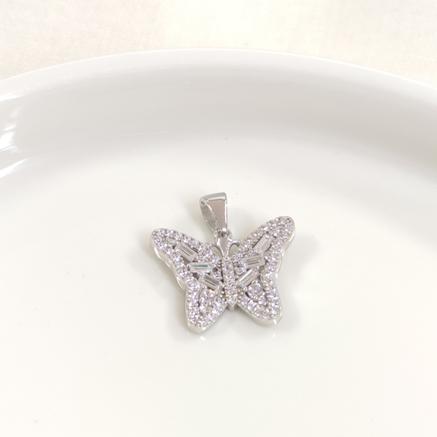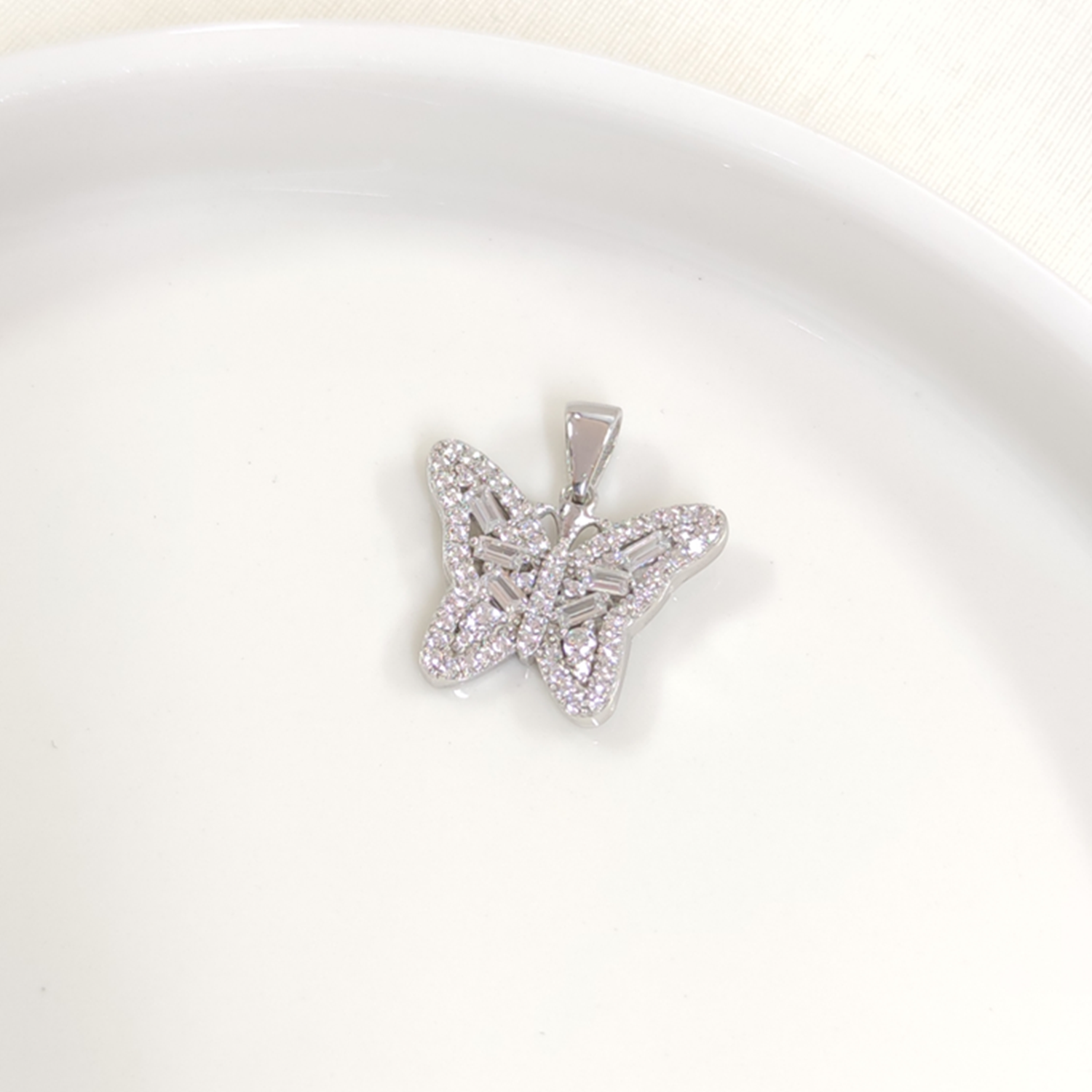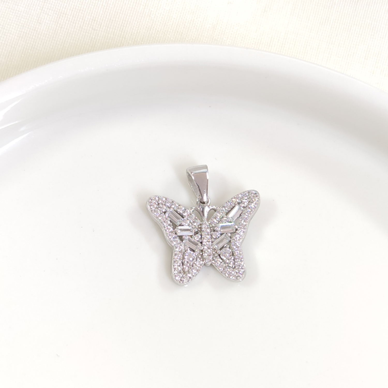 17 MM BAGET TAŞLI KELEBEK GÜMÜŞ KOLYE UCU