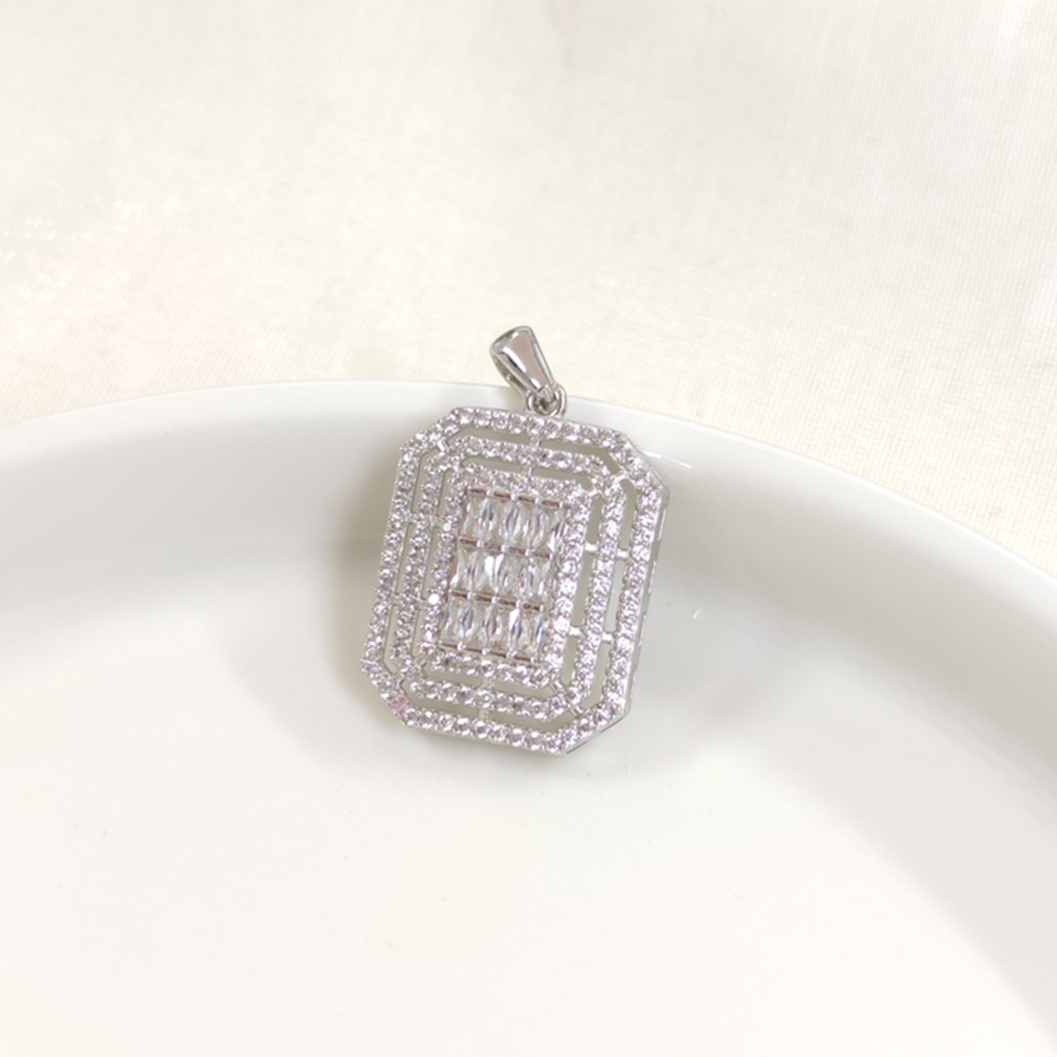 22 MM PIRLANTA MONTÜR BAGET GÜMÜŞ KOLYE UCU - RODYUM BEYAZ