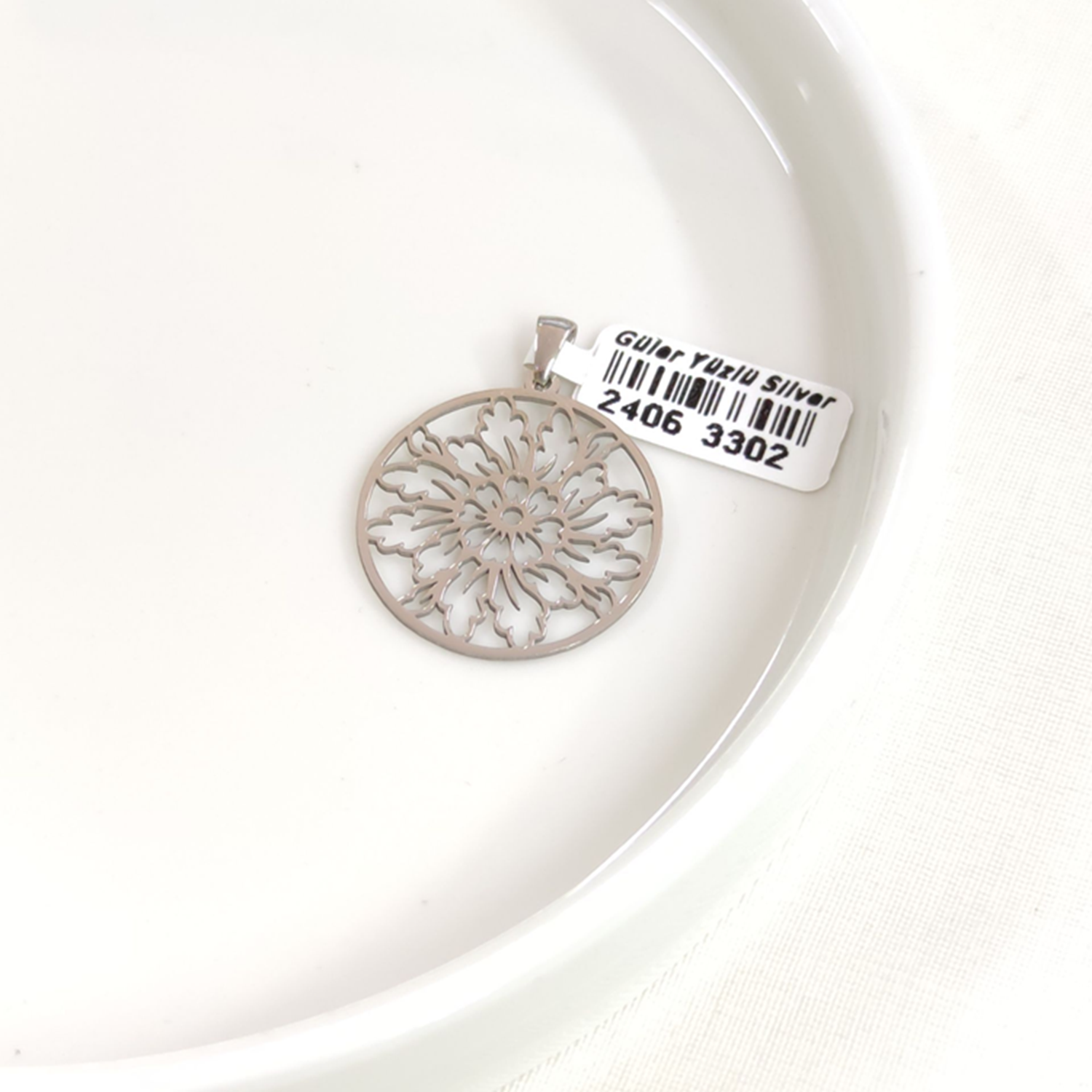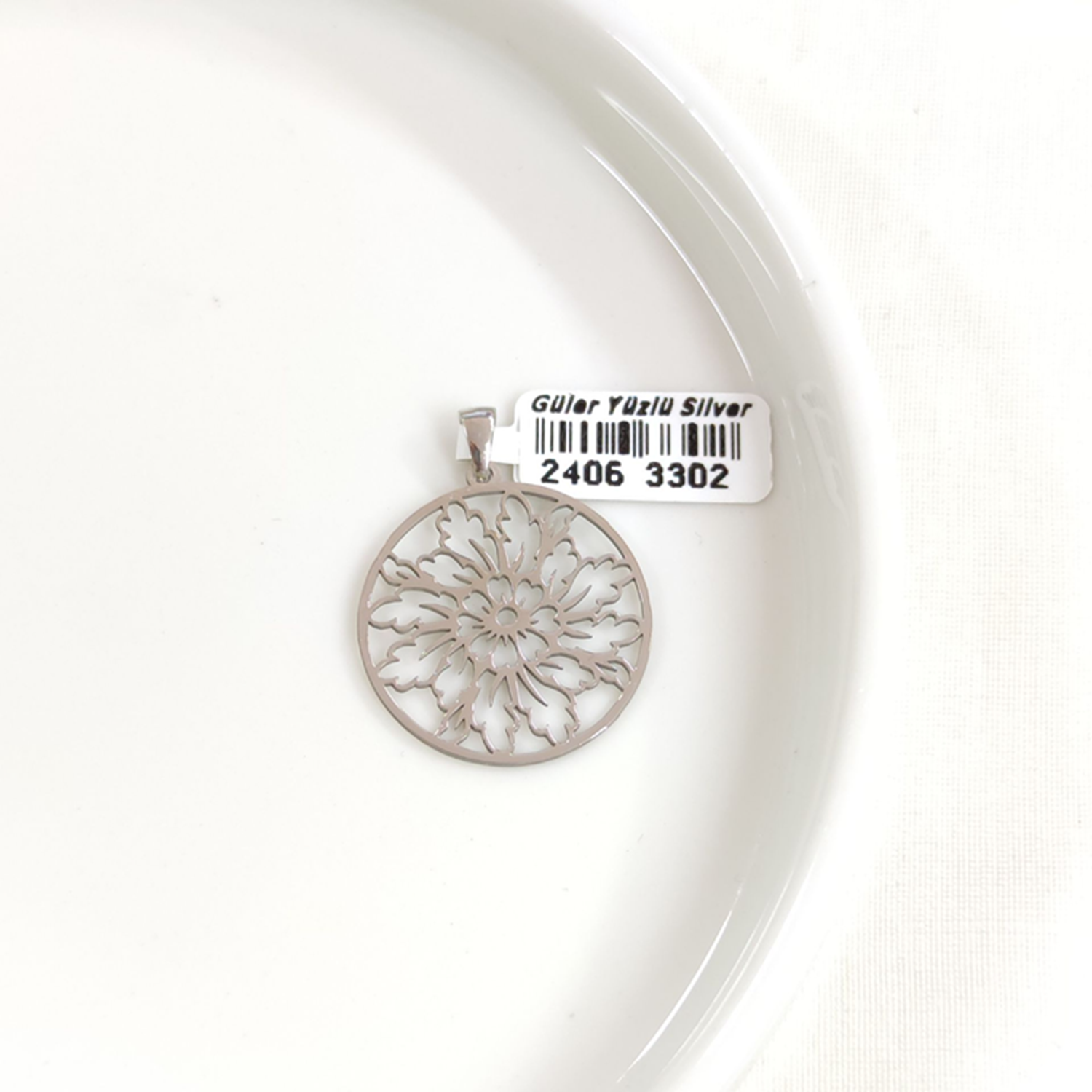 ÇİÇEK MOTİFLİ PLAKA GÜMÜŞ KOLYE UCU 25MM