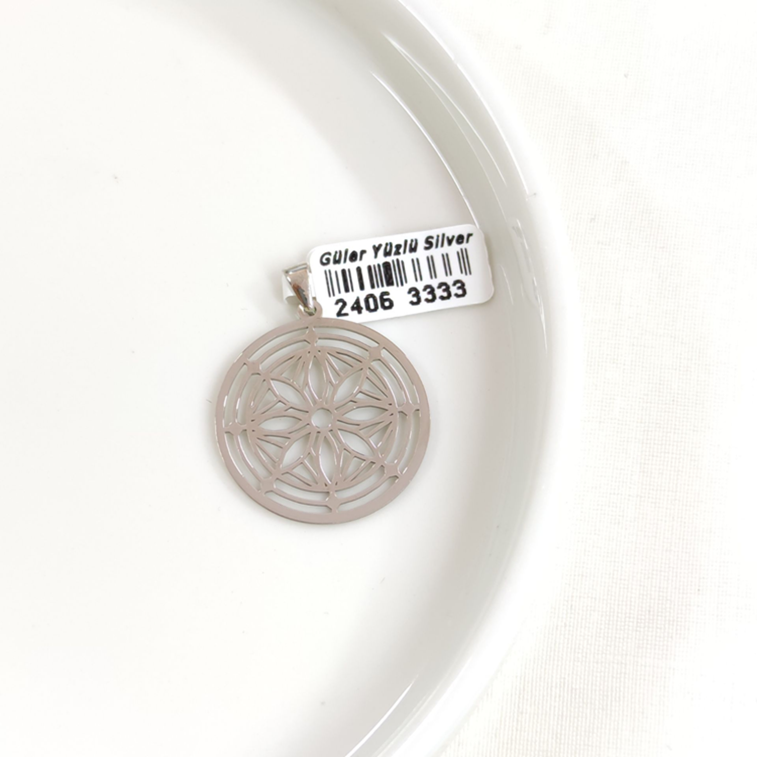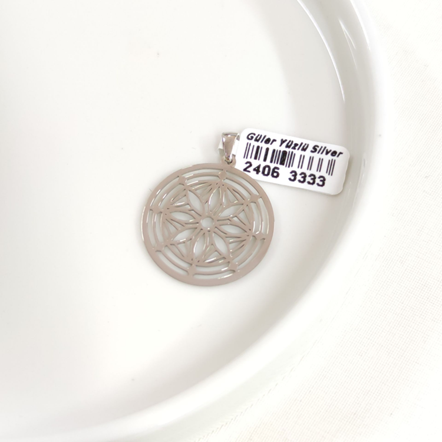 ÇİÇEKLİ MOTİFLİ PLAKA GÜMÜŞ KOLYE UCU 25MM