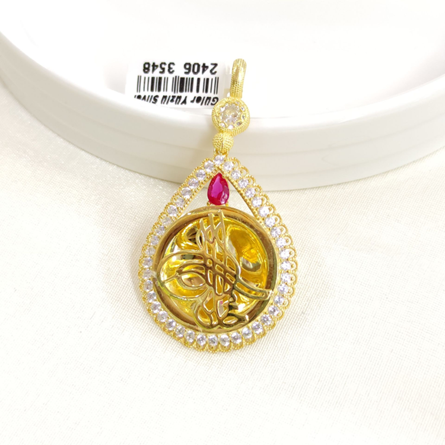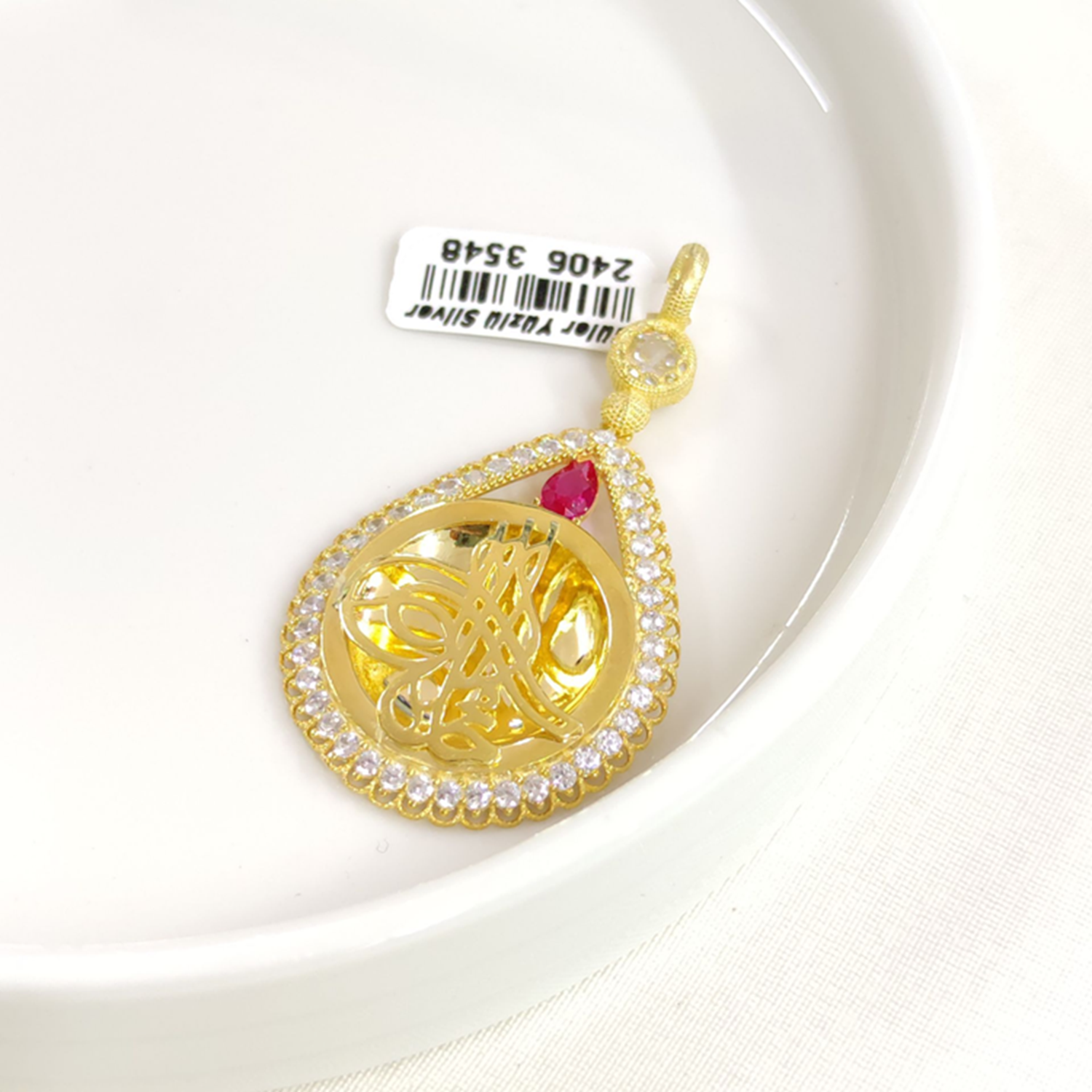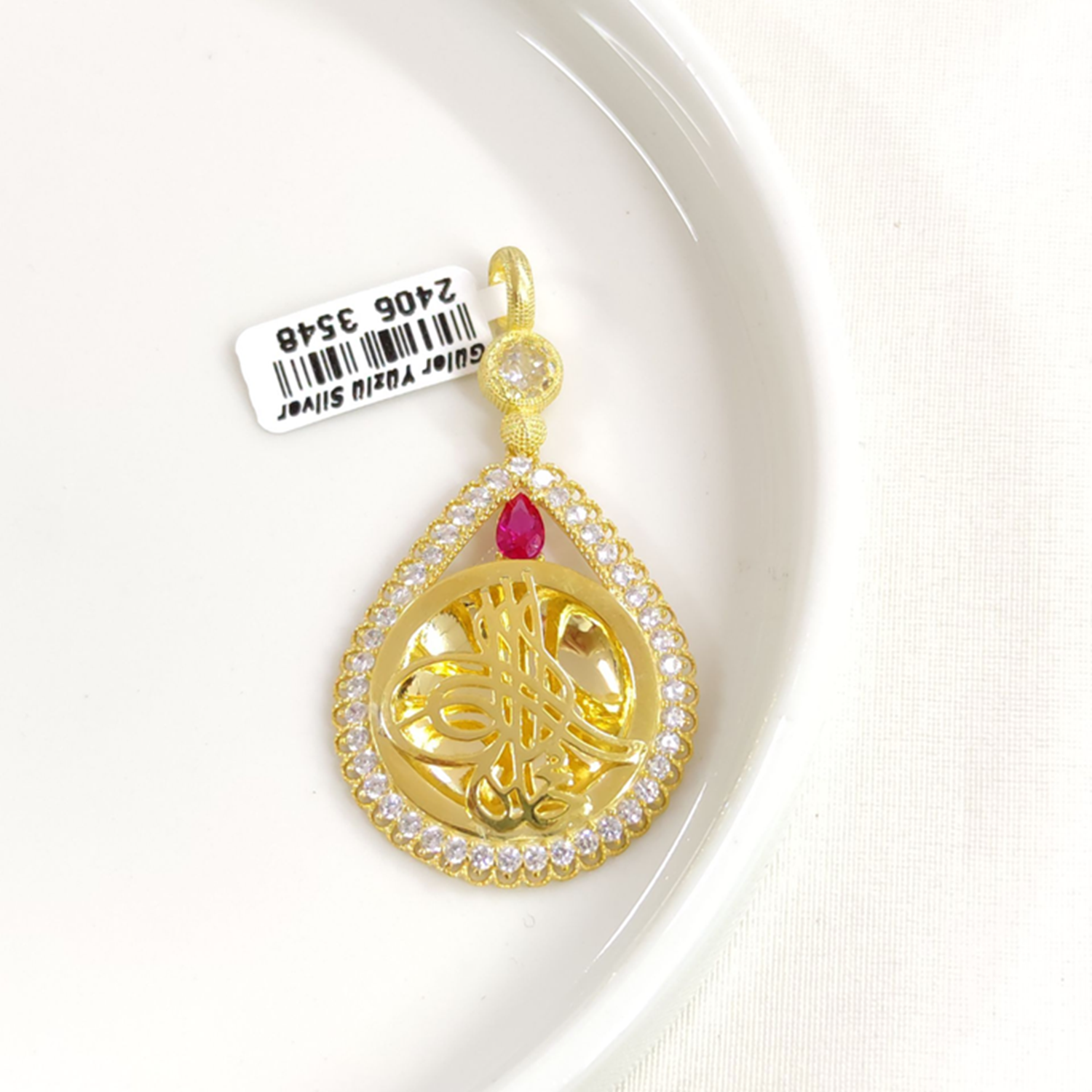 FUŞYA TAŞLI BÜYÜK TUĞRA GÜMÜŞ KOLYE UCU 30x55MM