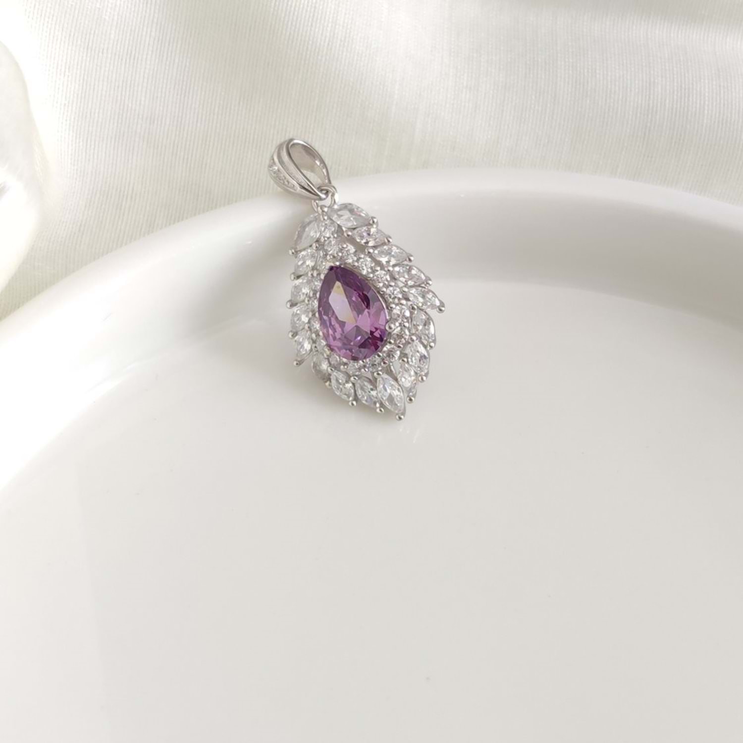 İTHAL İŞÇİLİKLİ MOR TAŞLI MEKİK GÜMÜŞ KOLYE UCU 2,3 CM