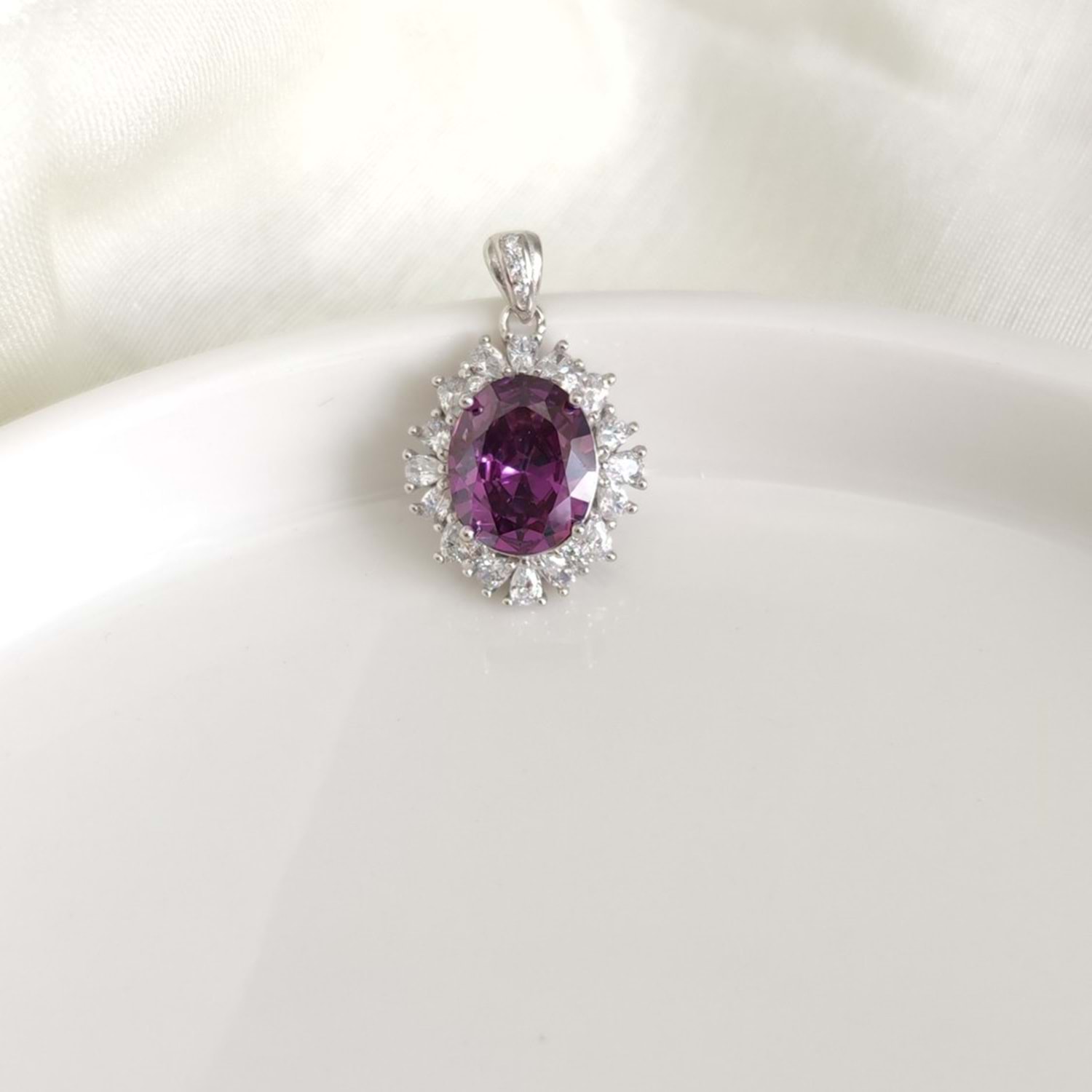 İTHAL İŞÇİLİKLİ MOR TAŞLI OVAL GÜMÜŞ KOLYE UCU 1,7 CM