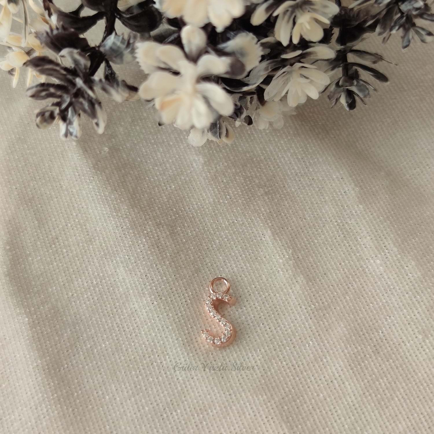 İTHAL TAŞLI HARF ( KOLYE KÜPE BİLEKLİK UCU) - ROSE ALTIN KAPLAMA (BAKIR) - S HARFİ