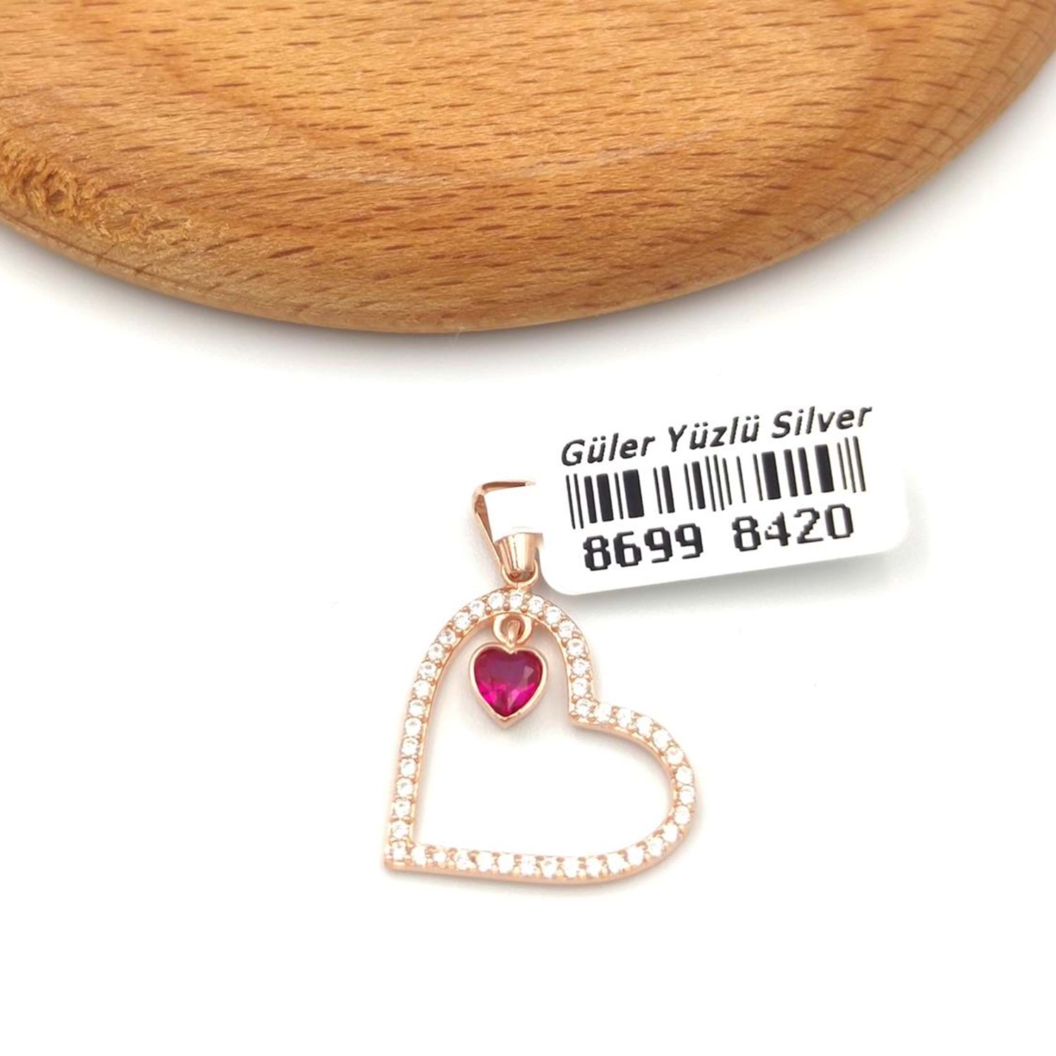 KIRMIZI SALLANTILI KALP GÜMÜŞ KOLYE UCU