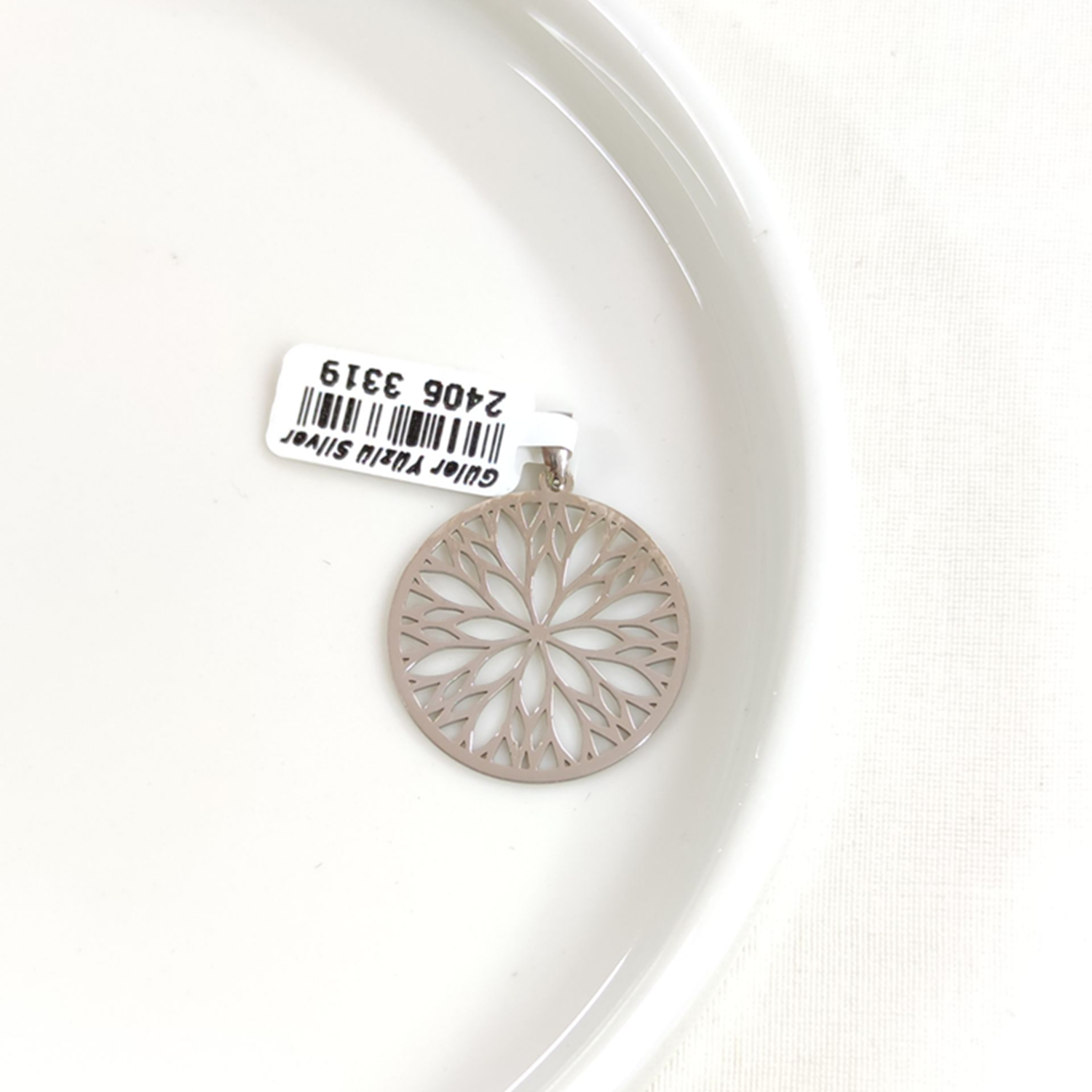 MANDALA MOTİFLİ PLAKA GÜMÜŞ KOLYE UCU 25MM