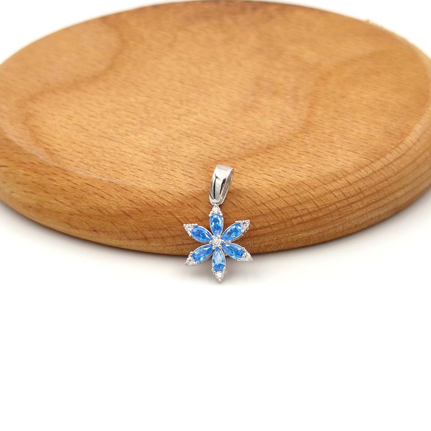 MİNİ MAVİ TAŞLI LOTUS GÜMÜŞ KOLYE UCU