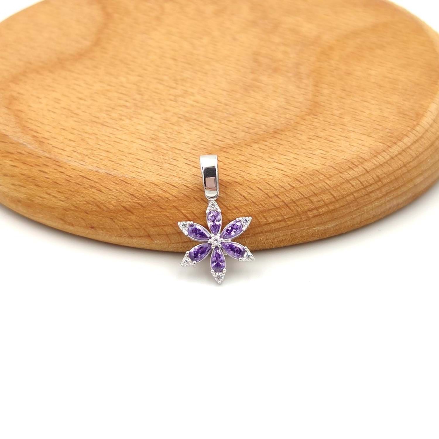 MİNİ MOR TAŞLI LOTUS GÜMÜŞ KOLYE UCU
