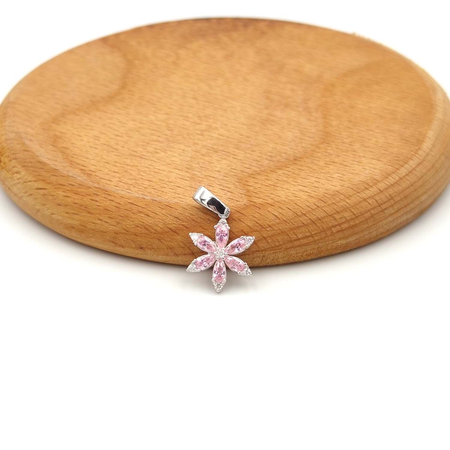 MİNİ PEMBE TAŞLI LOTUS GÜMÜŞ KOLYE UCU