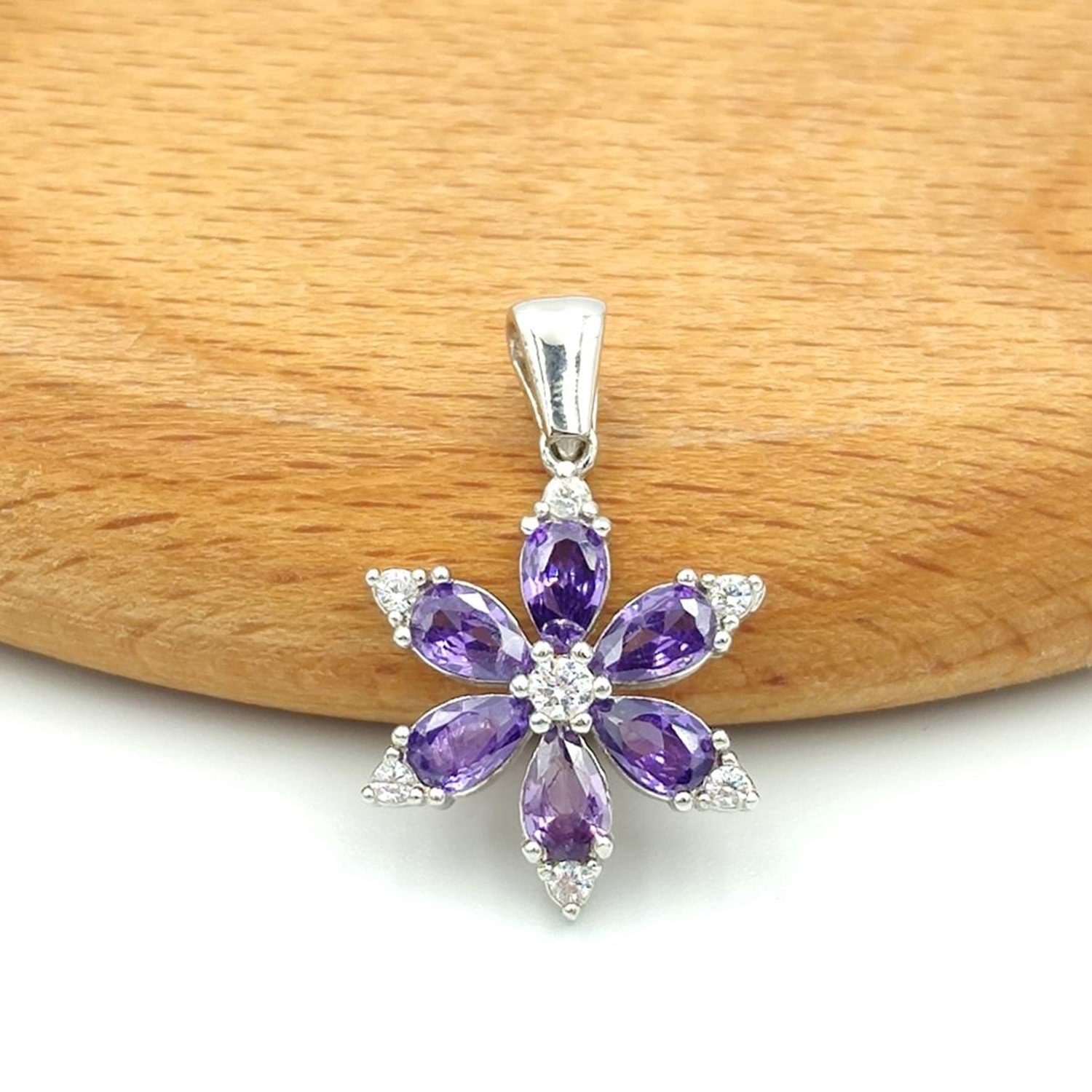 MOR LOTUS ÇİÇEK GÜMÜŞ KOLYE UCU - RODYUM BEYAZ