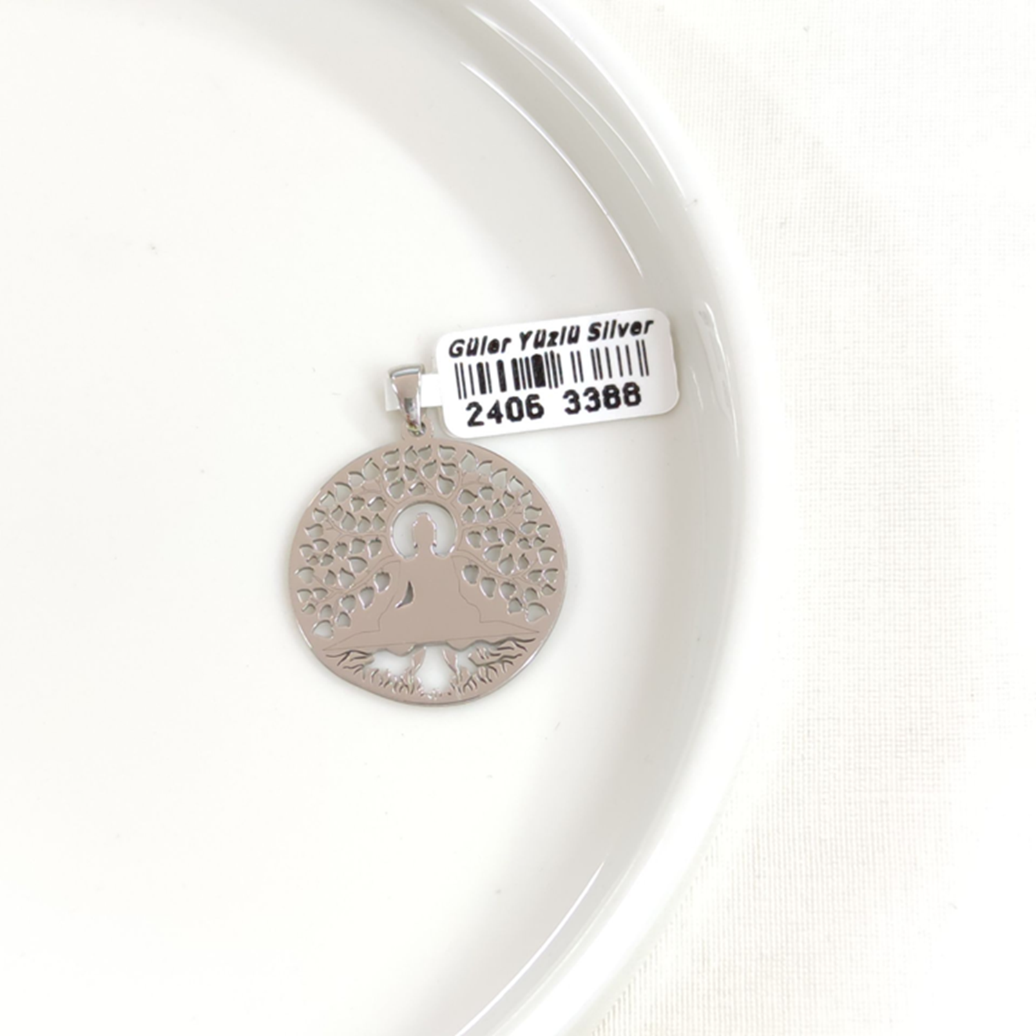 MOTİFLİ PLAKA GÜMÜŞ KOLYE UCU 25MM
