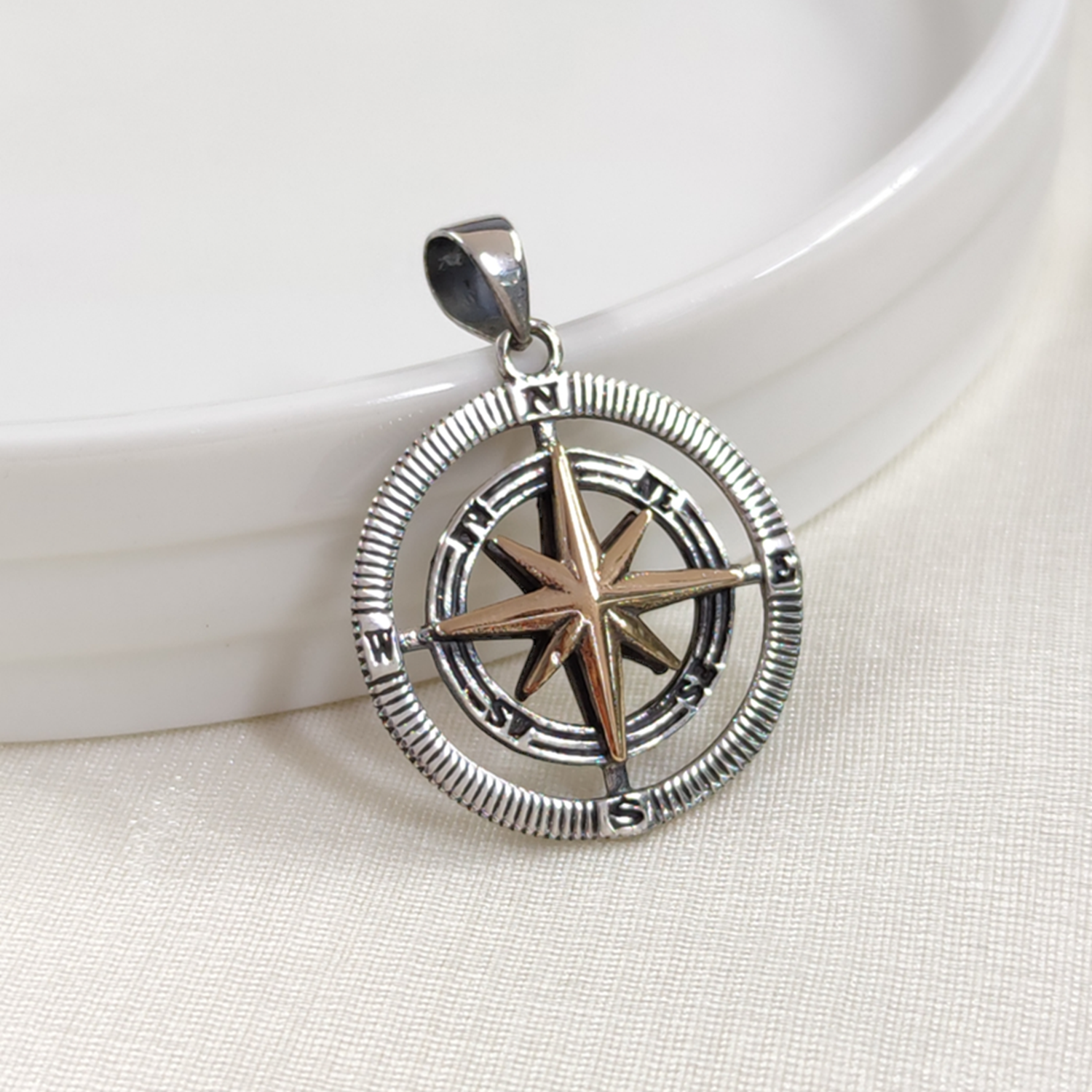 PUSULA GÜMÜŞ KOLYE UCU ÇAP 2,5 CM