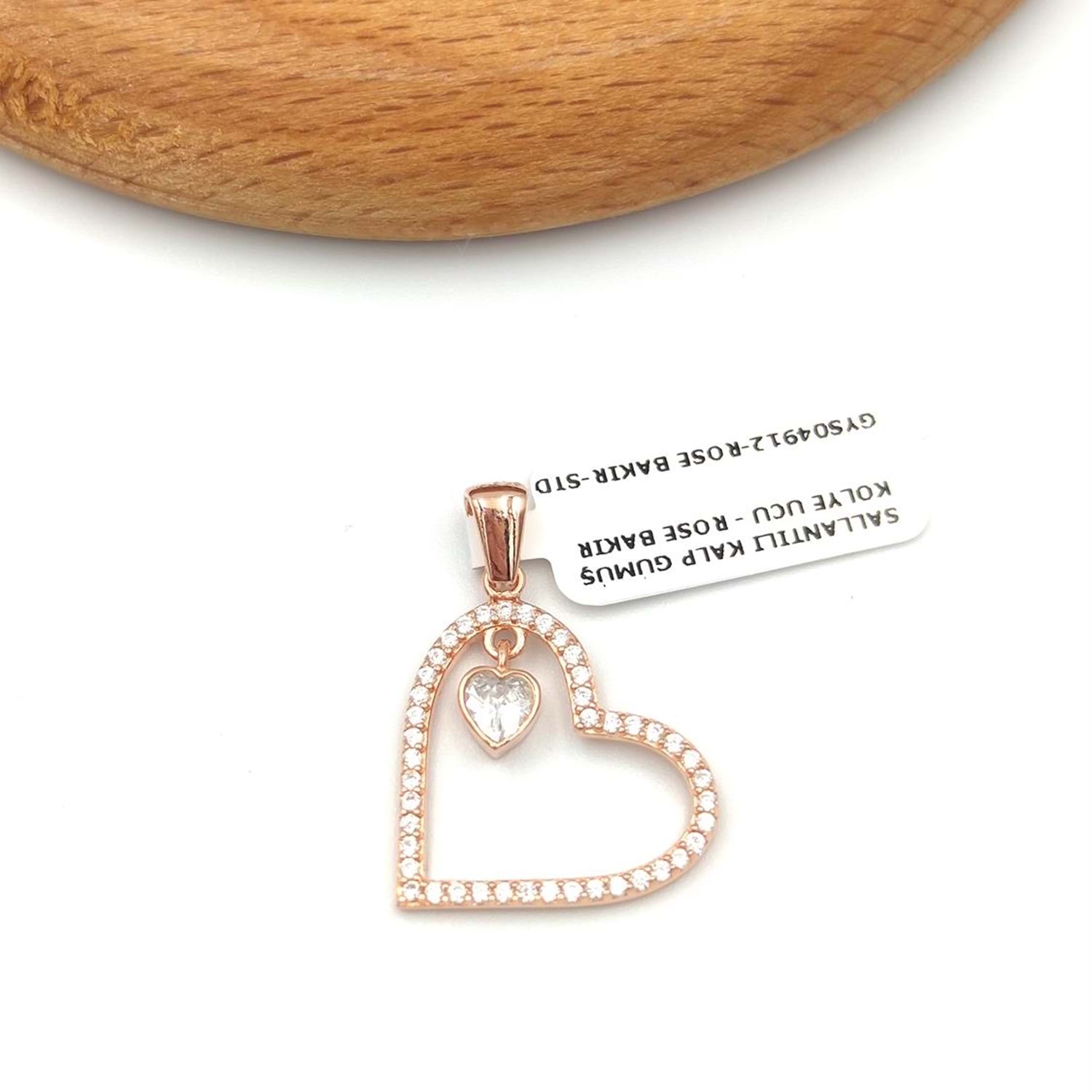SALLANTILI KALP GÜMÜŞ KOLYE UCU - ROSE BAKIR
