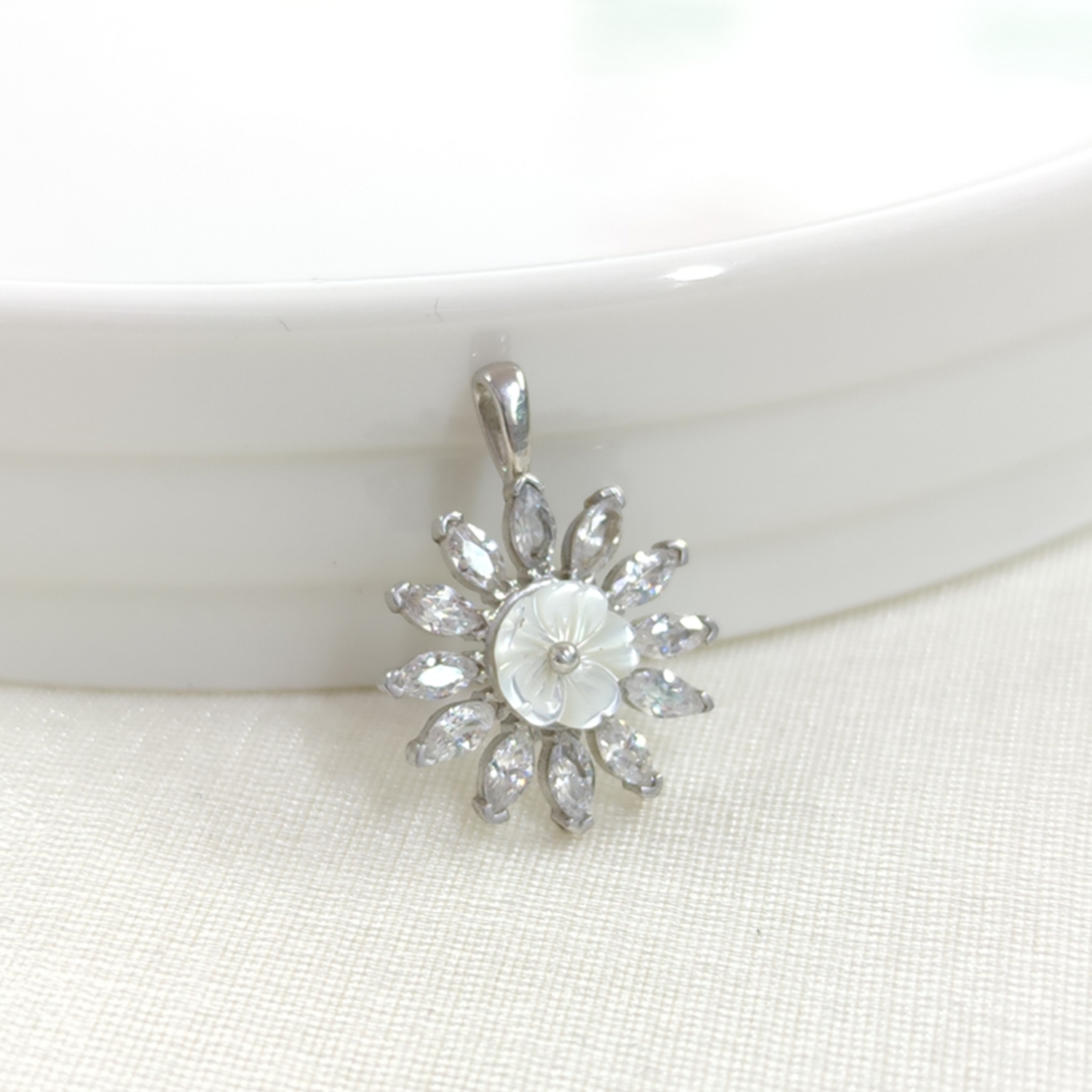SEDEF ÇİÇEKLİ PAPATYA GÜNEŞ GÜMÜŞ KOLYE UCU - RODYUM BEYAZ