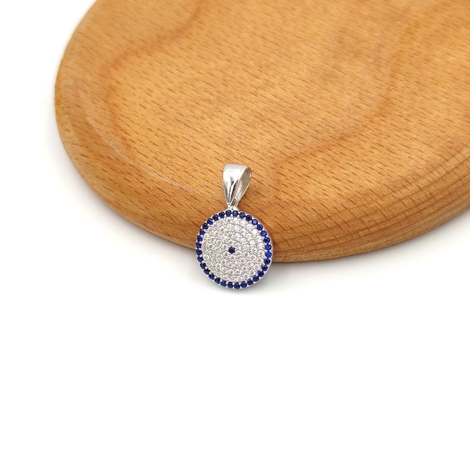 925 ayar gümüş, zirkon taş kullanılmıştır. kolye ucu boyutu :1,50 CM NAZAR BONCUĞU GÜMÜŞ KOLYE UCU