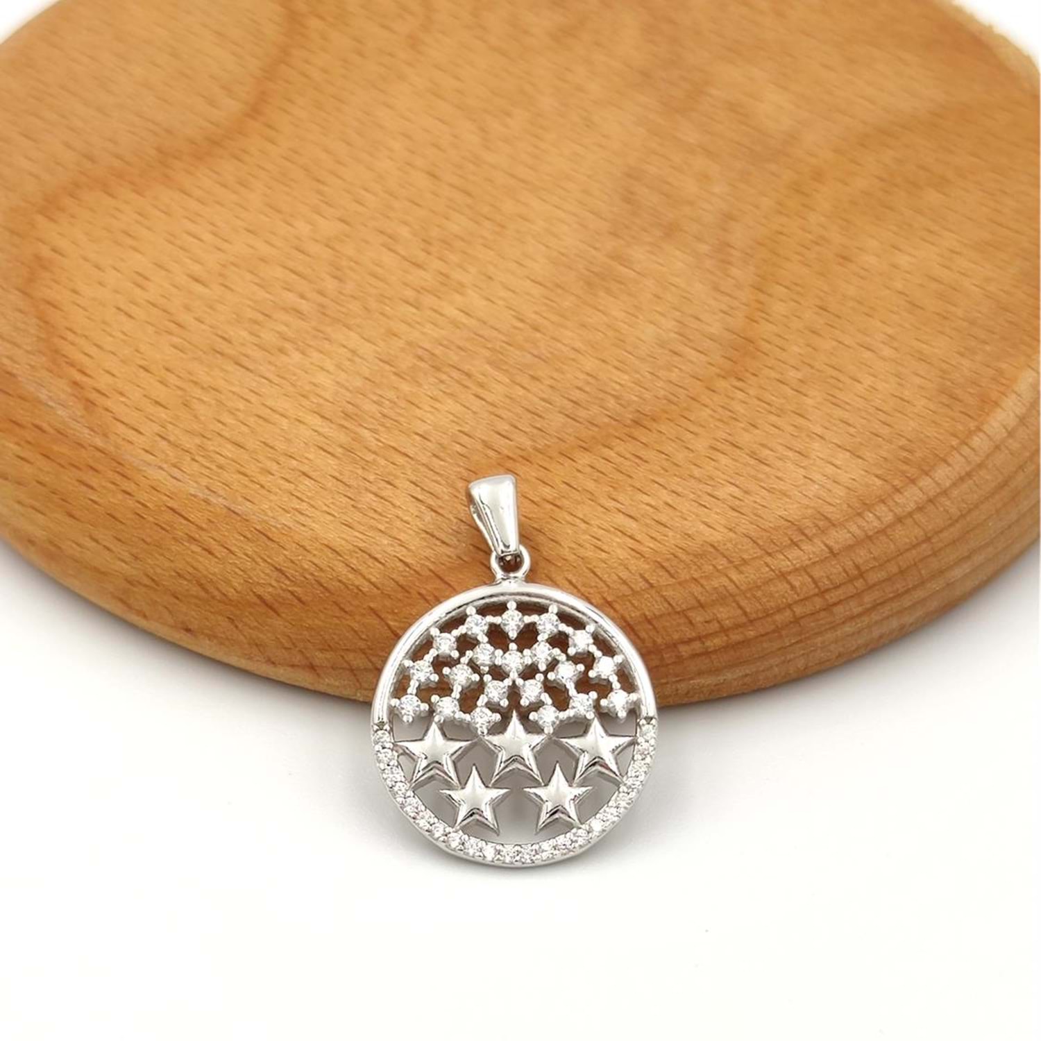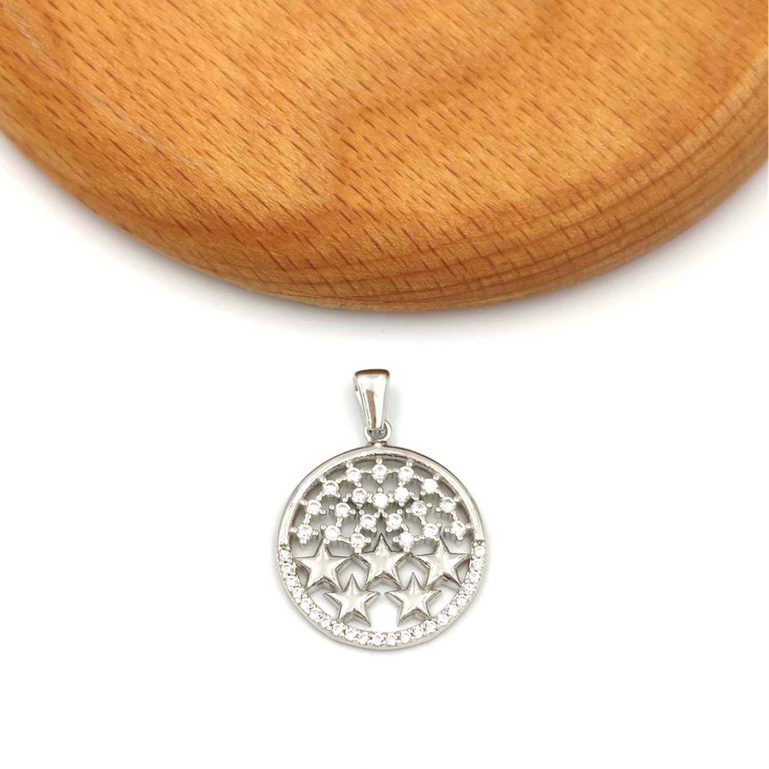 YUVARLAK YILDIZLI GÜMÜŞ KOLYE UCU - RODYUM BEYAZ