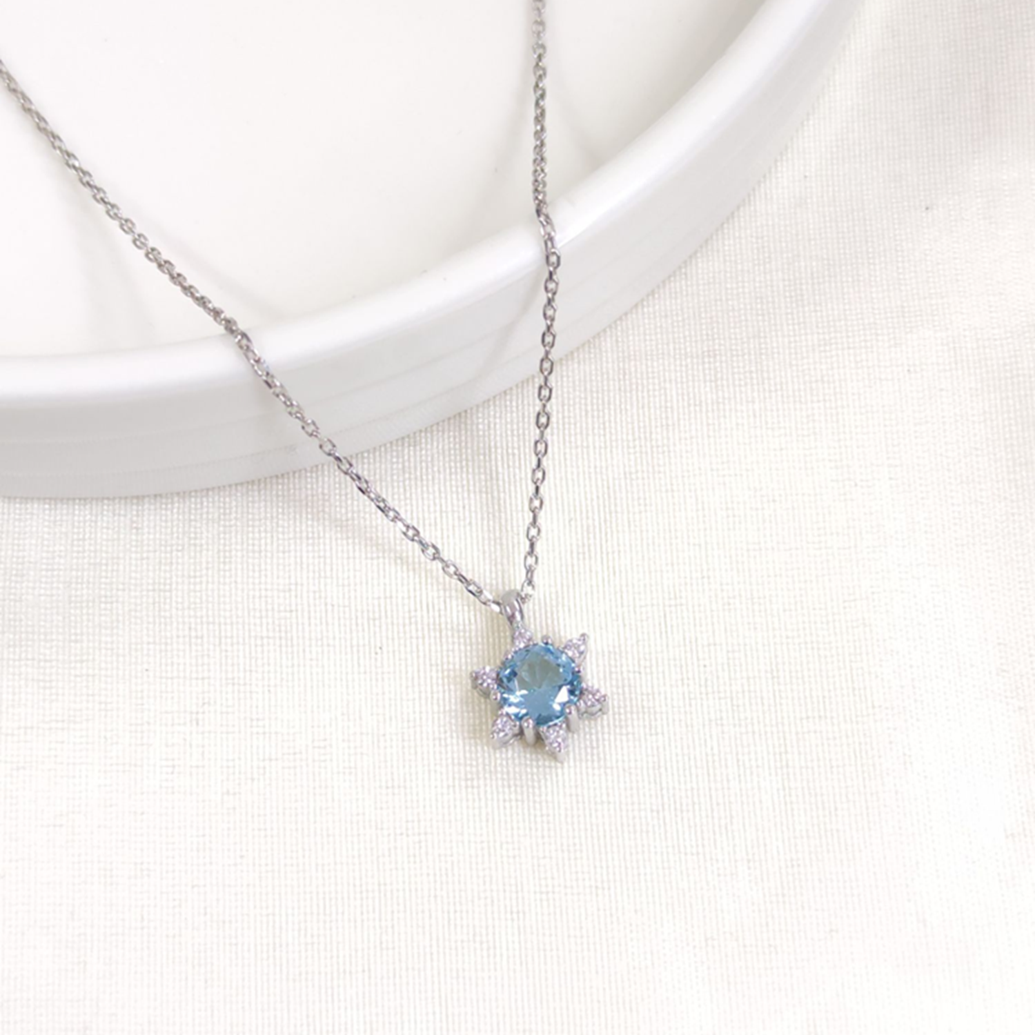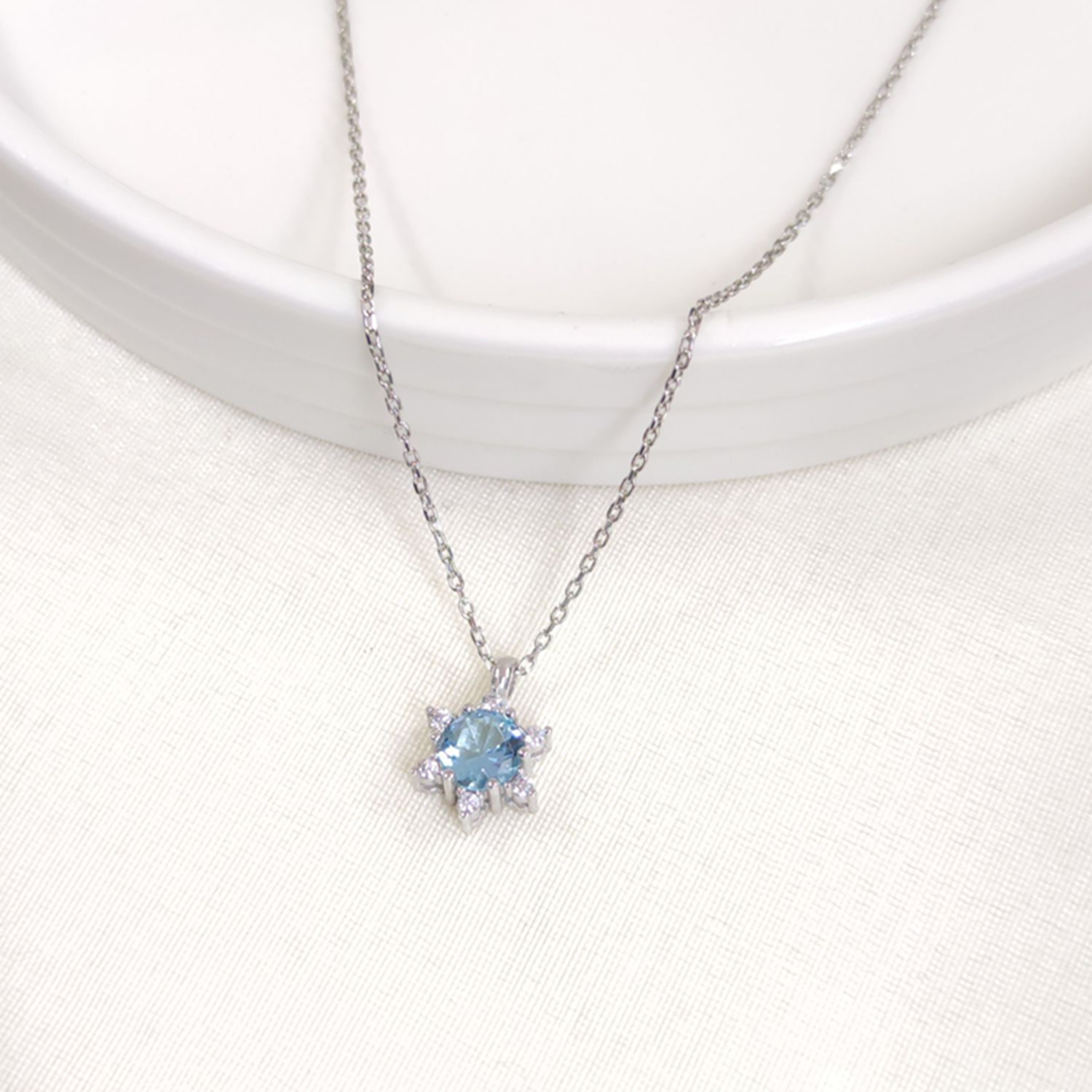 1 CM MAVİ TAŞLI LOTUS GÜMÜŞ KOLYE 40+5 CM